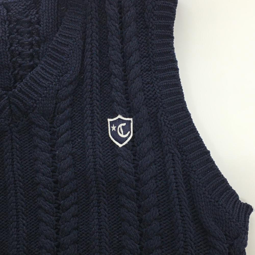 【美品】キャロウェイ ニットベスト ネイビー×白 ケーブル編み Vネック レディース L ゴルフウェア Callaway