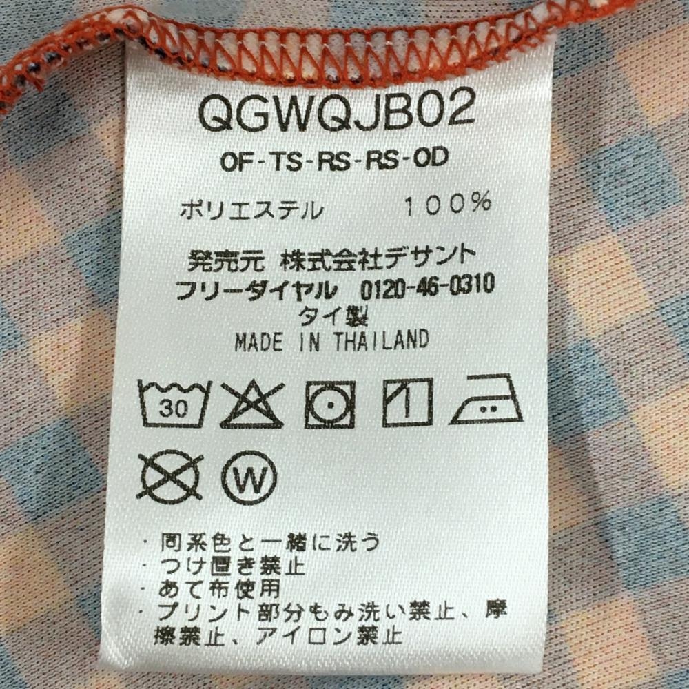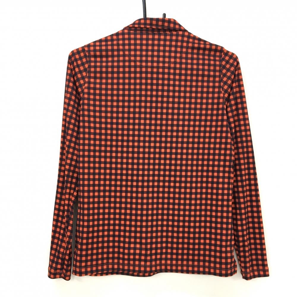 【超美品】ルコックゴルフ 長袖ポロシャツ オレンジ×ネイビー チェック柄 ロゴ刺しゅう レディース L ゴルフウェア le coq sportif