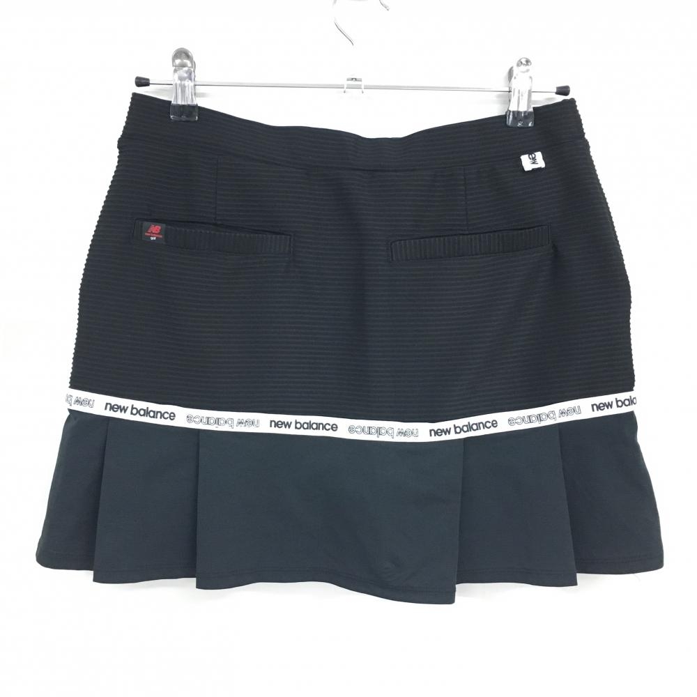 【超美品】ニューバランスゴルフ プリーツスカート 黒×白 ロゴライン ウエストゴム 調節紐 レディース 1(M) ゴルフウェア New Balance