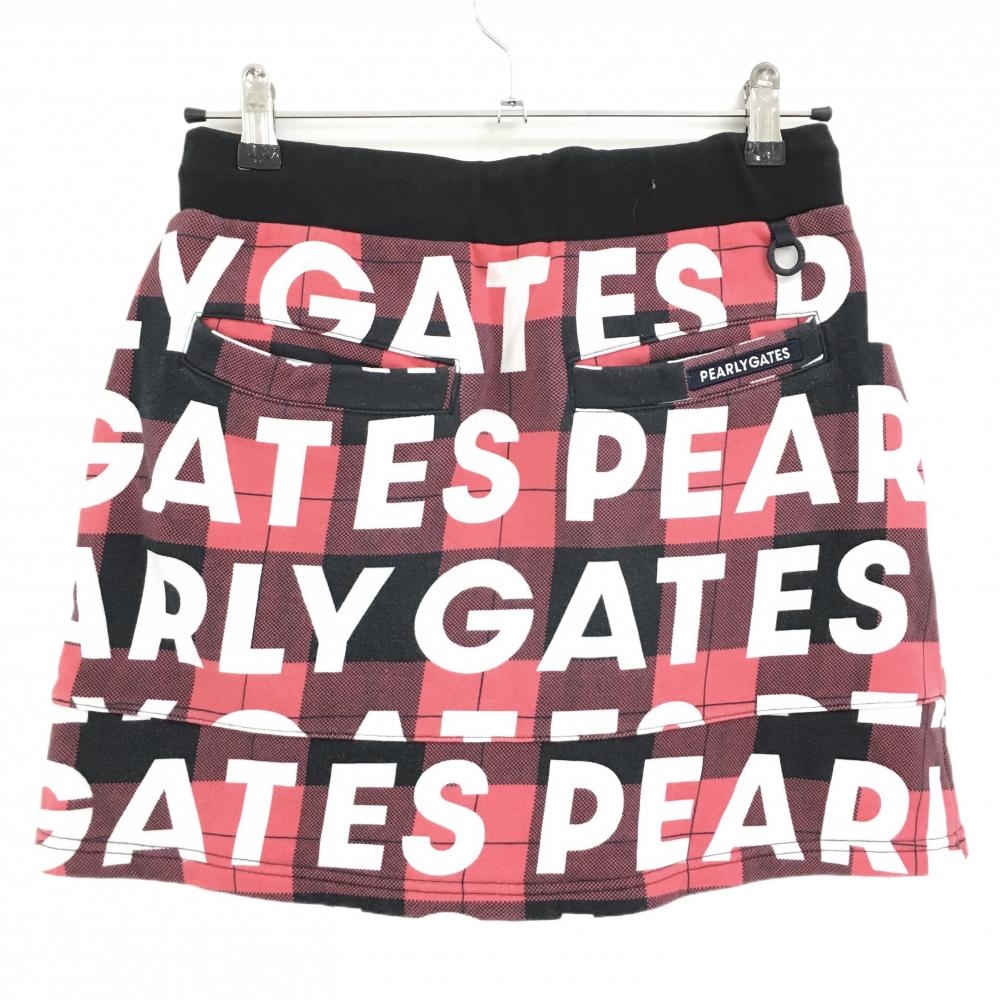 パーリーゲイツ スカート ピンク×黒×白 チェック ロゴ総柄 裏起毛 ウエストゴム&調節紐 レディース 1(M) ゴルフウェア PEARLY GATES