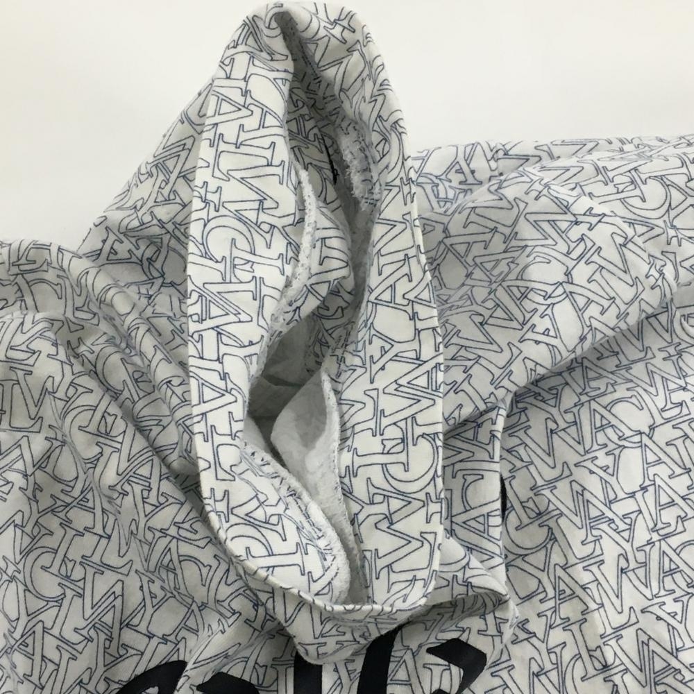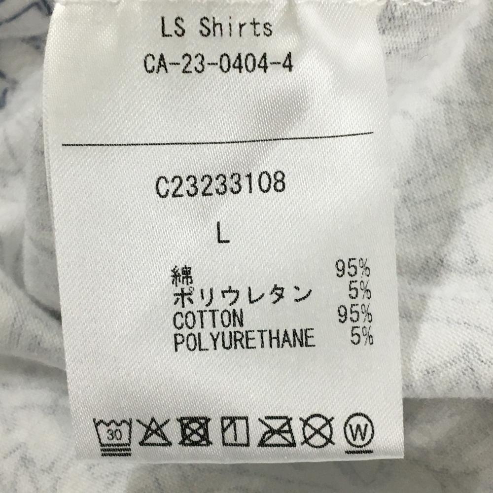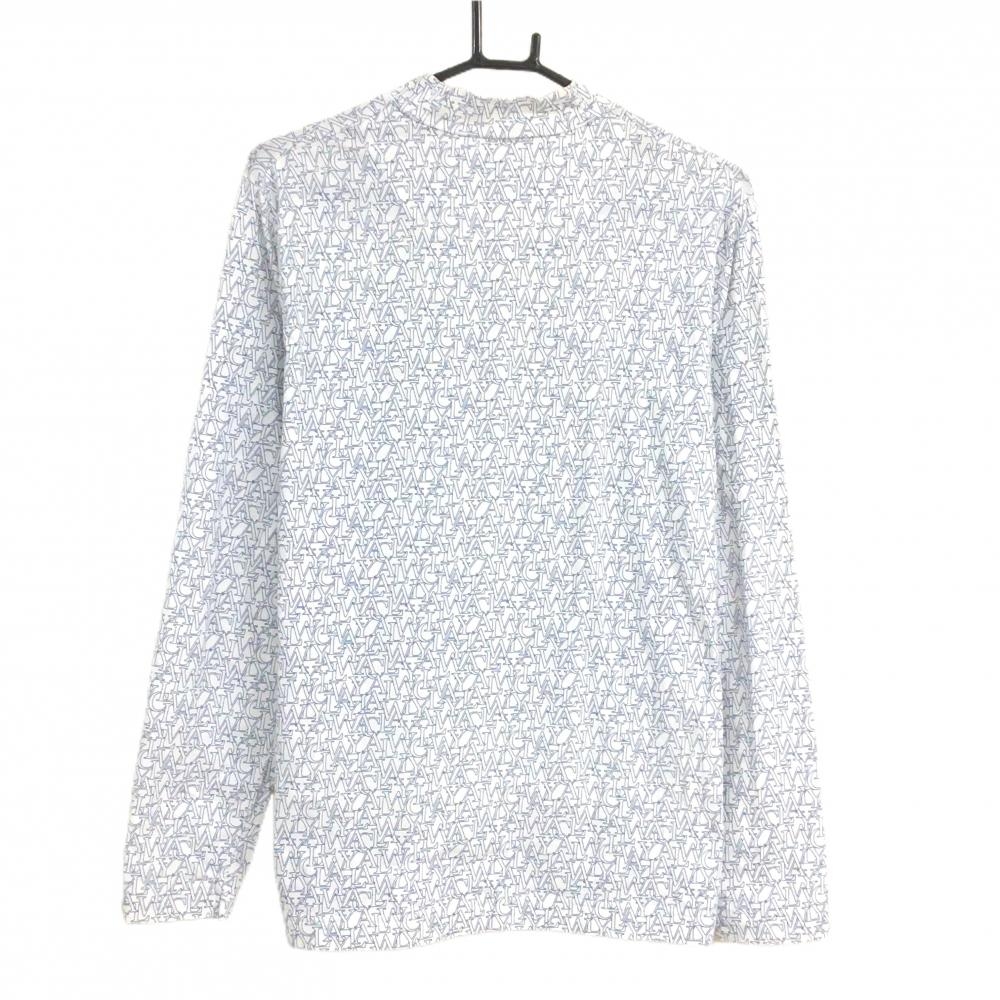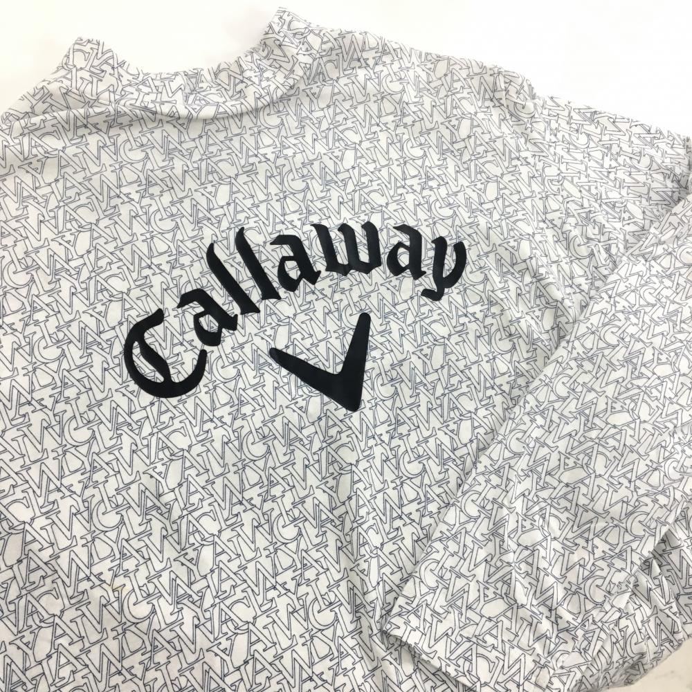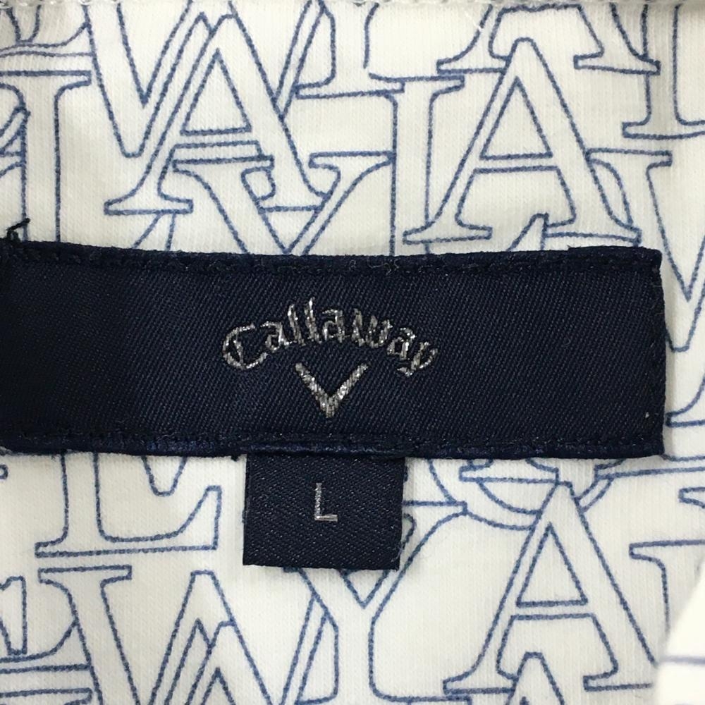 【美品】キャロウェイ 長袖ハイネックシャツ 白×ネイビー 英字総柄 フロントロゴ メンズ L ゴルフウェア Callaway
