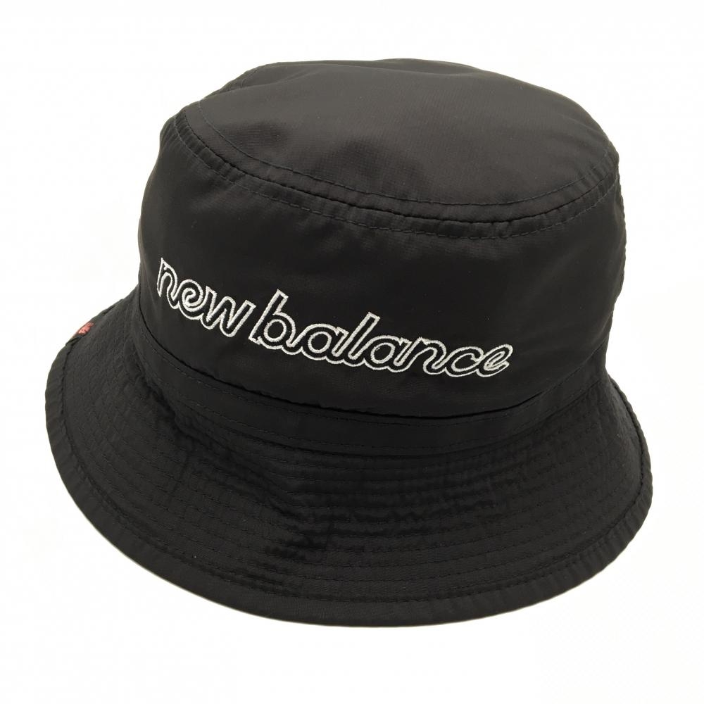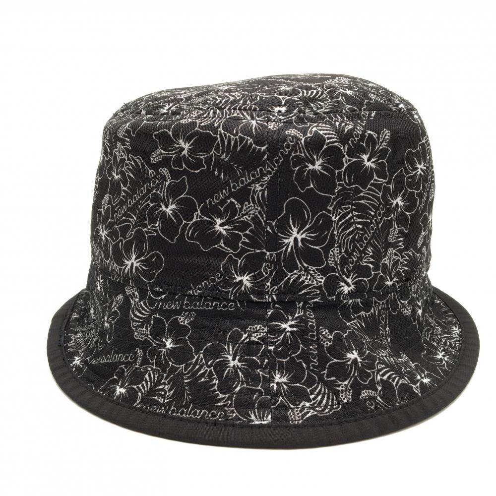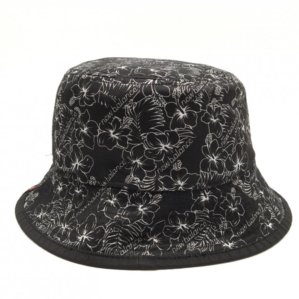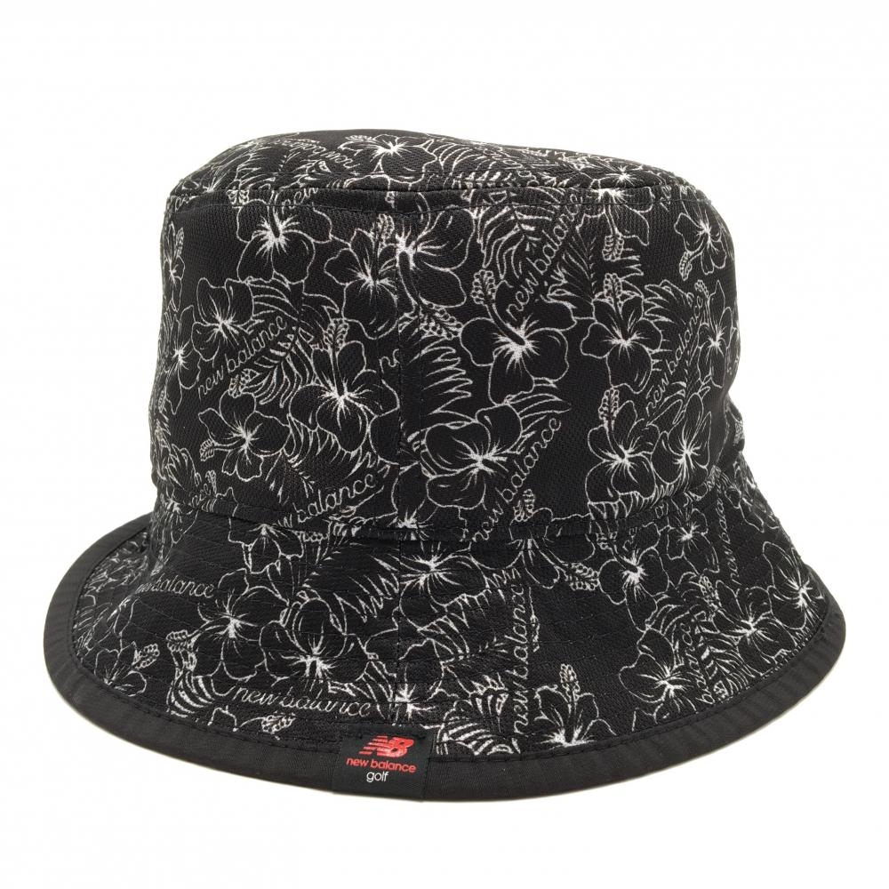【超美品】ニューバランスゴルフ リバーシブルハット 黒×白 ハイビスカス柄 裏無地 ロゴ刺しゅうドローコード ゴルフウェア New Balance
