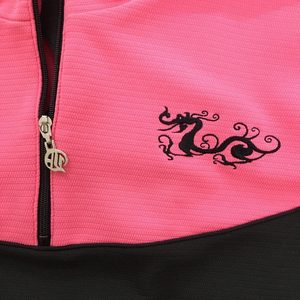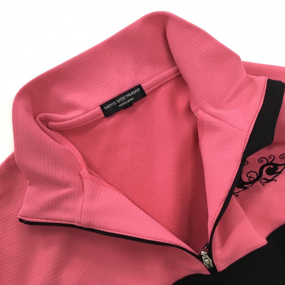 ダンスウィズドラゴン 長袖ハイネックシャツ ピンク×黒 ロゴ刺しゅう メンズ 2(M) ゴルフウェア Dance With Dragon