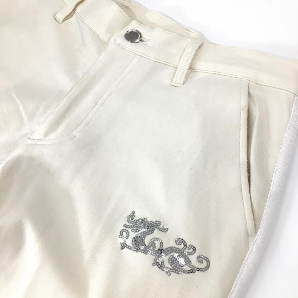 ダンスウィズドラゴン パンツ アイボリー×白 サイドライン スパンコールロゴ ストレッチ メンズ 2(M) ゴルフウェア Dance With Dragon