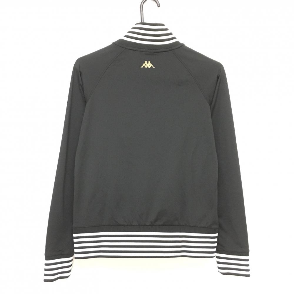 【美品】カッパ ブルゾン 黒×白 ネック・裾ボーダー スタッズ ダブルジップ レディース M ゴルフウェア Kappa