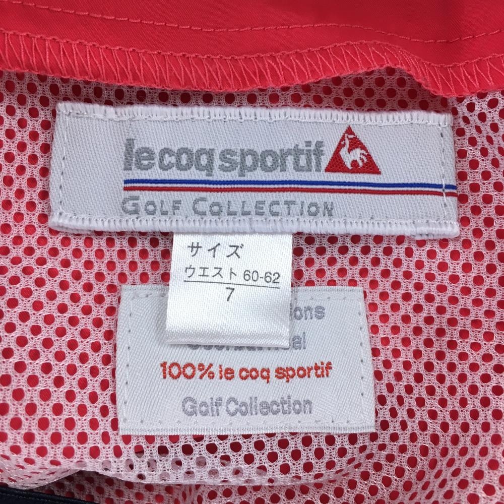 【超美品】ルコックゴルフ スカート ピンク×ネイビー ロゴ刺しゅう 内側インナーパンツ レディース 7 ゴルフウェア le coq sportif