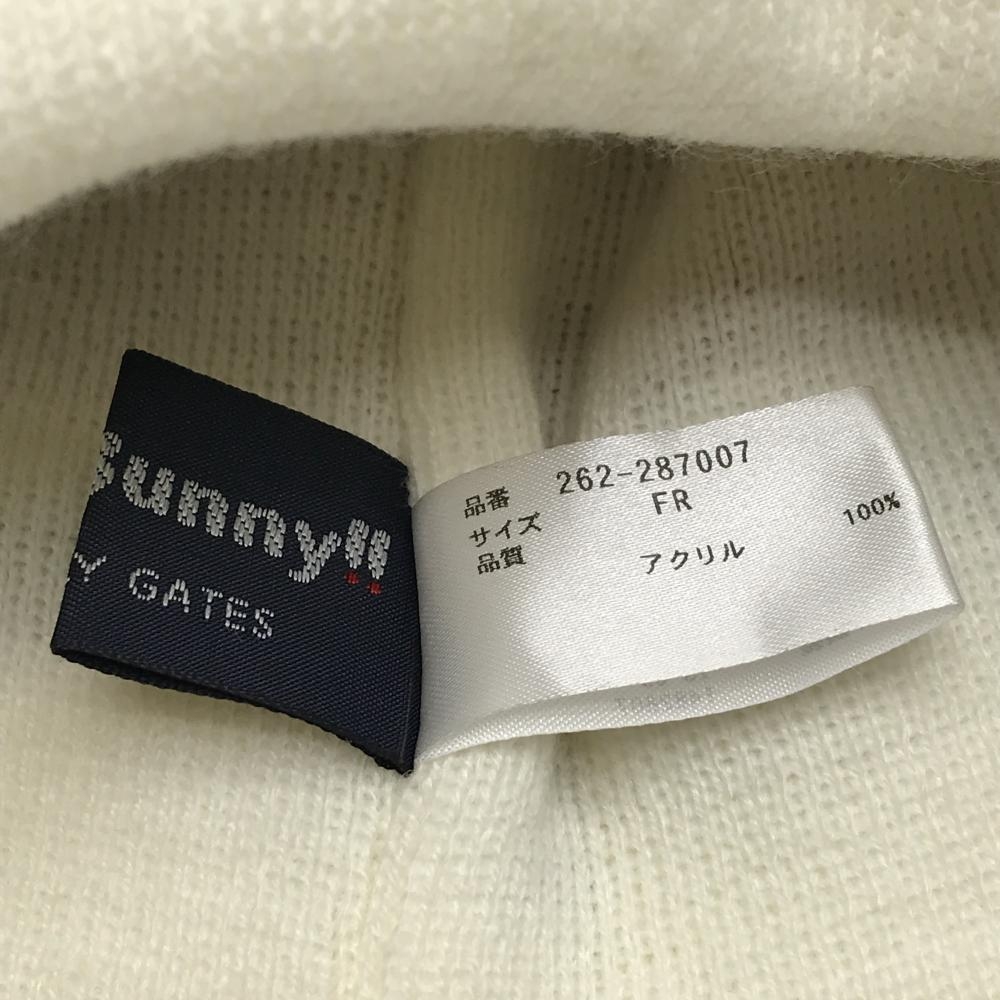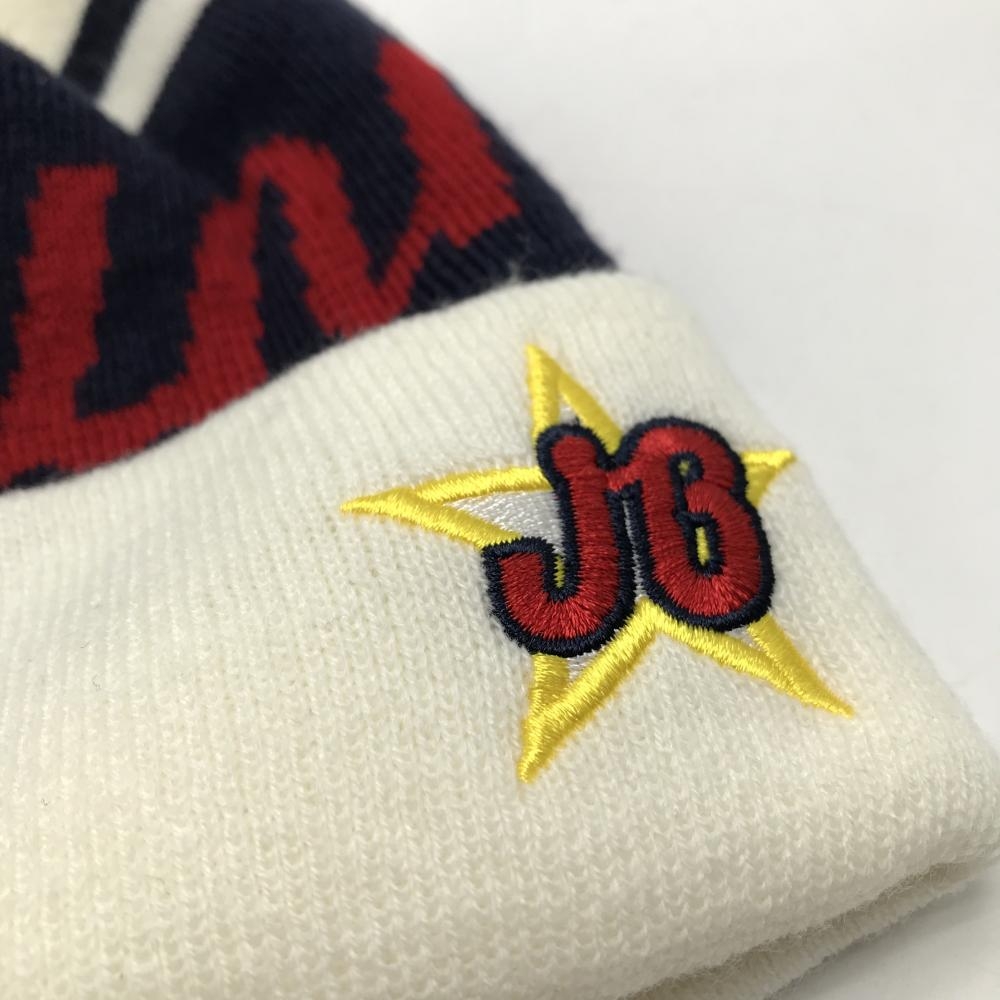 【超美品】ジャックバニー ニット帽 白×ネイビー ボンボン付 ロゴ刺しゅう FR ゴルフウェア Jack Bunny