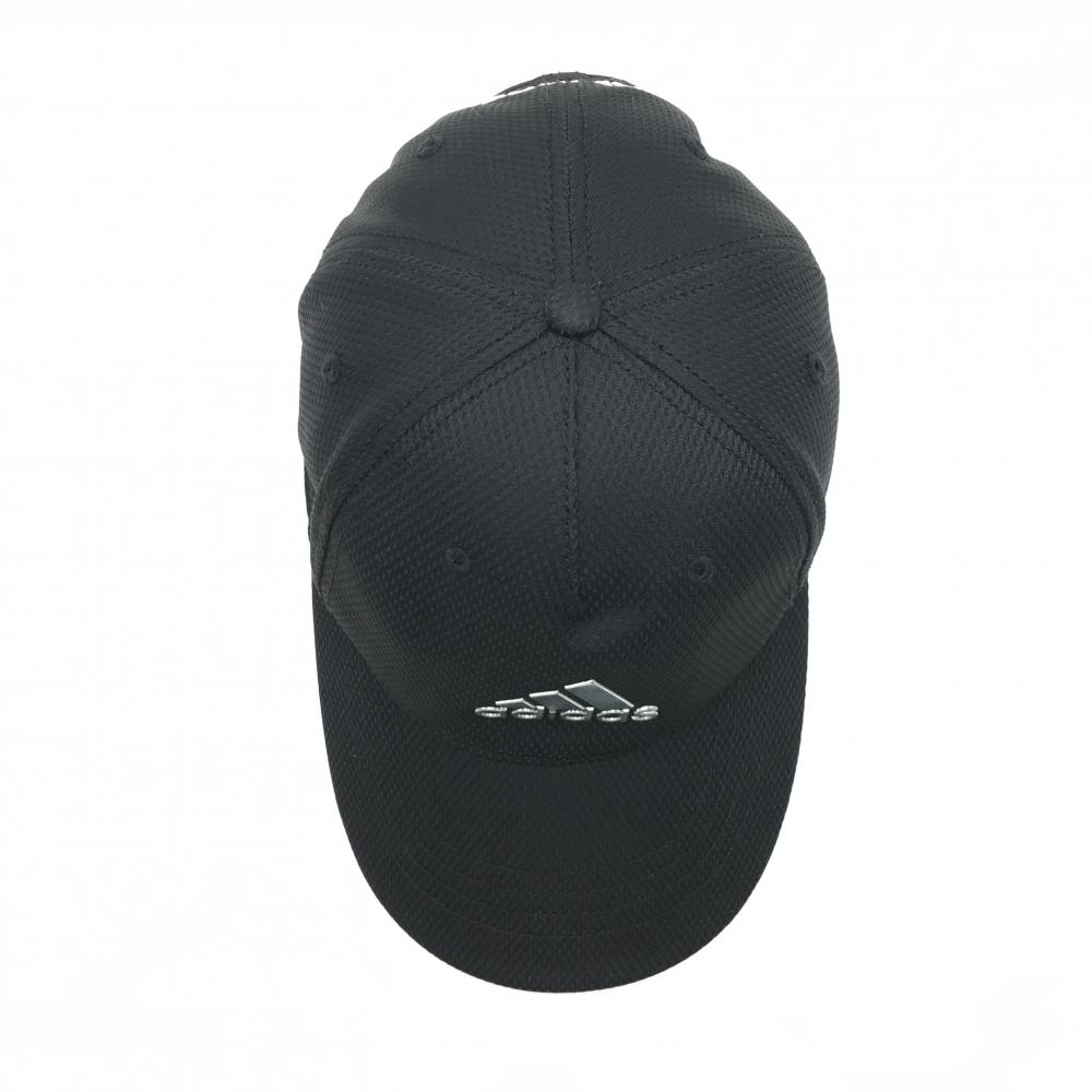 【美品】アディダス キャップ 黒 地模様 ロゴシルバー フリー(57-59㎝) ゴルフウェア adidas