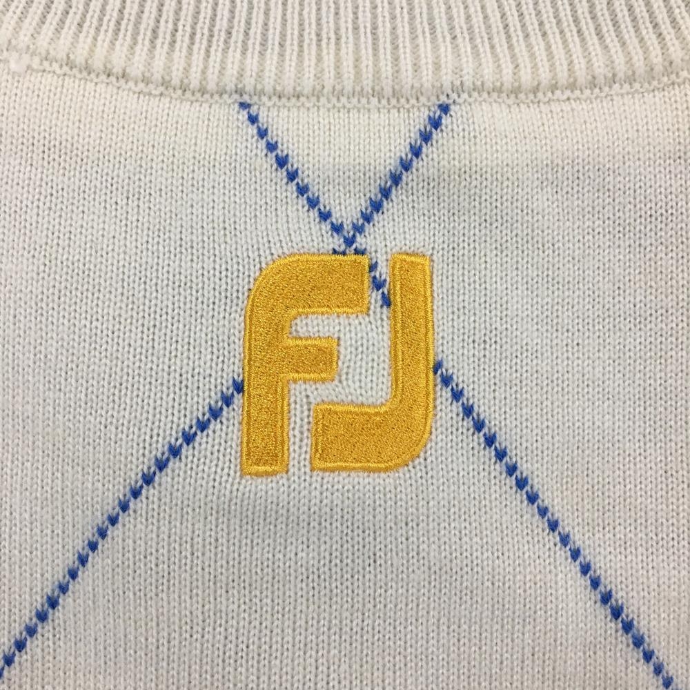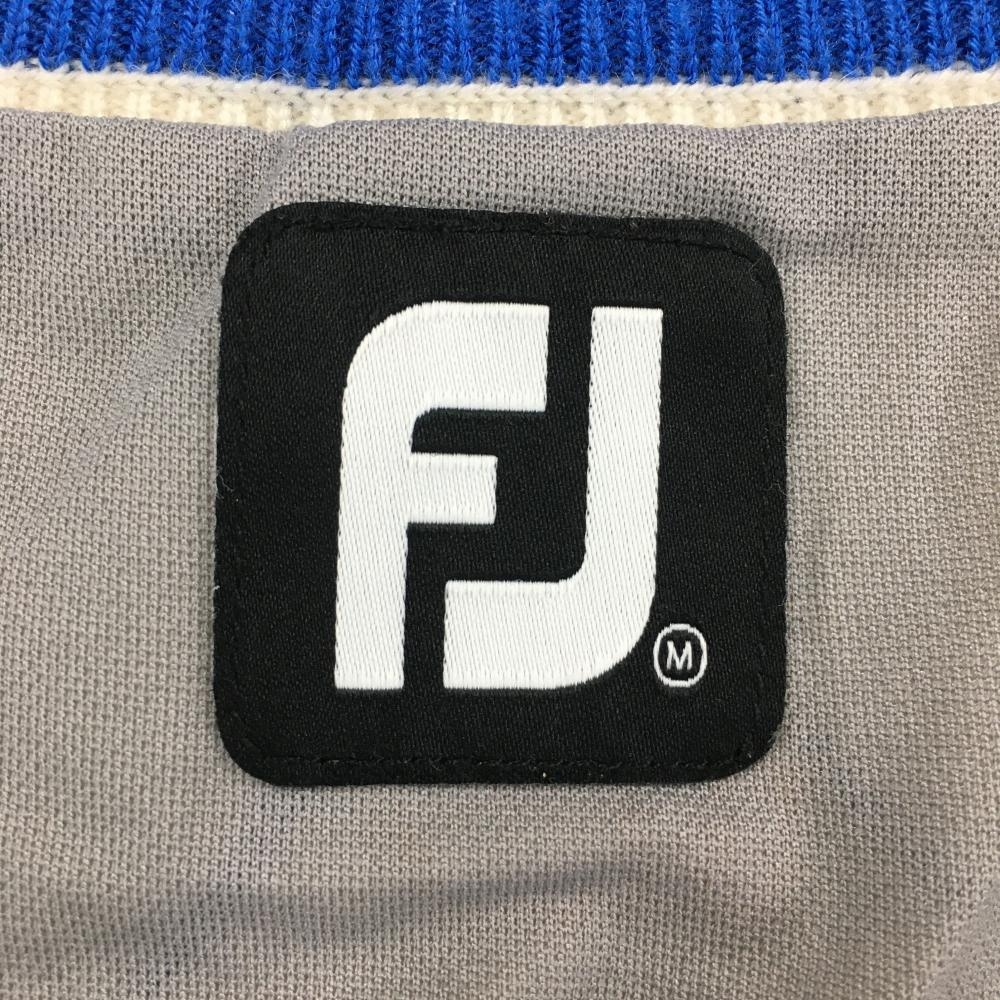 【美品】フットジョイ ニットブルゾン アイボリー×ネイビー 上部アーガイル柄 ウール混 裏地付 メンズ M ゴルフウェア FootJoy