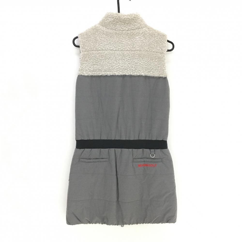 【超美品】ビームスゴルフ 中綿ノースリーブワンピース グレー×ベージュ 上部ボア ロゴ刺しゅう レディース M ゴルフウェア BEAMS GOLF