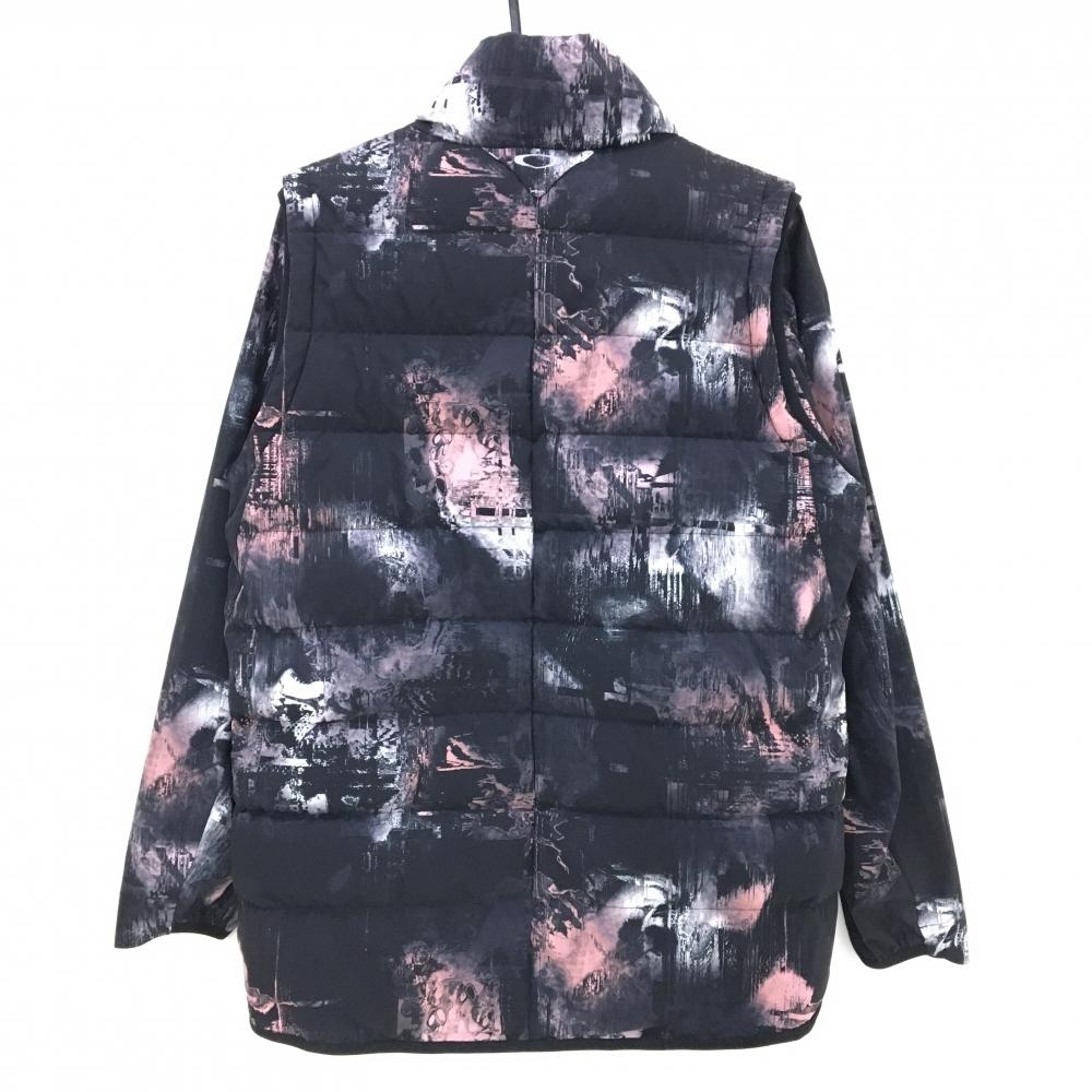 【超美品】オークリー ライナー付ダウンベスト 黒×ピンク 総柄 ライナー収納可 ロゴ刺しゅう ダウン90% メンズ XL ゴルフウェア Oakley