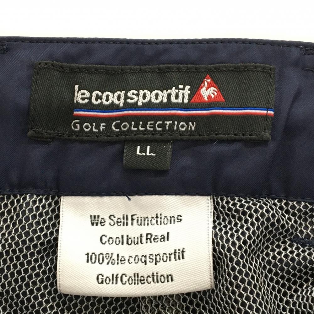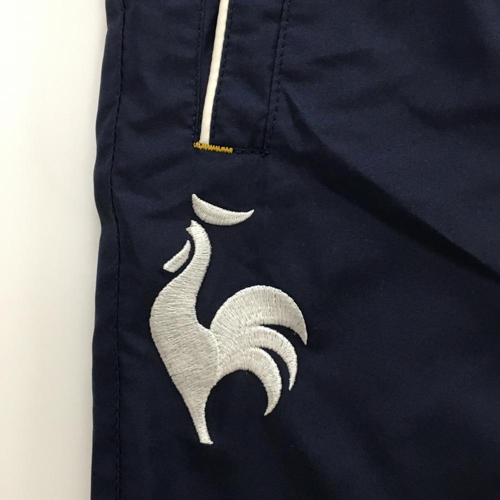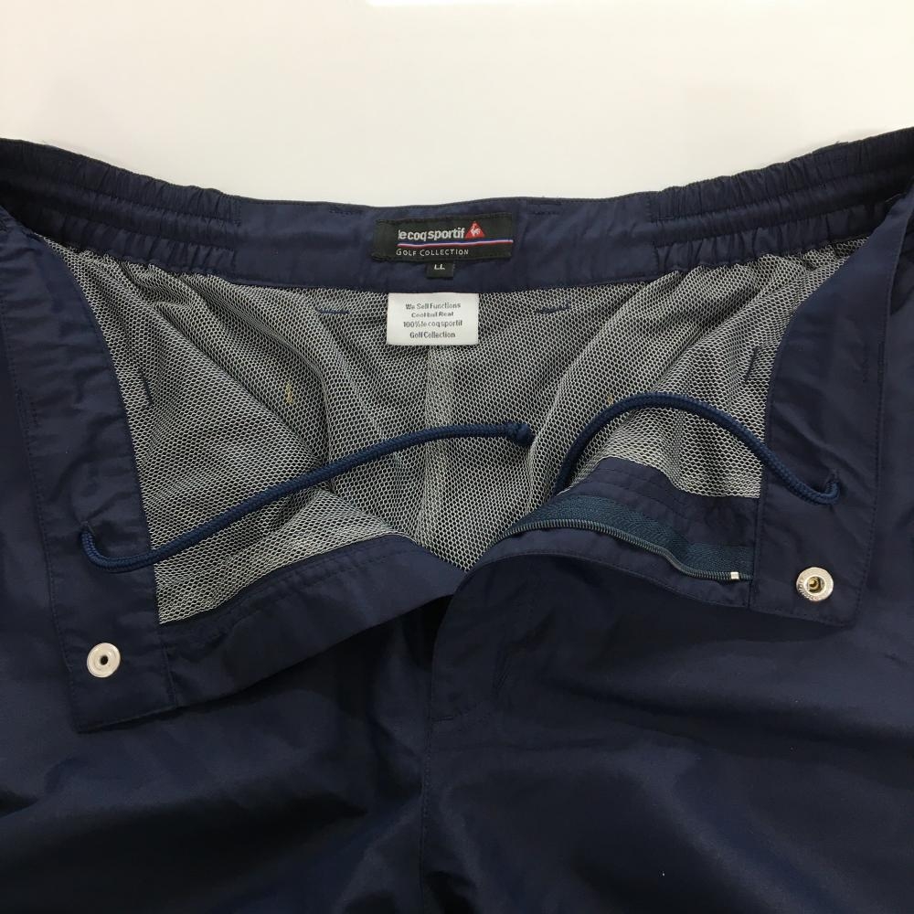 【超美品】ルコック パンツ ネイビー×白 シャカシャカ ロゴ刺しゅう メッシュ裏地 裾ドローコード メンズ LL ゴルフウェア le coq sportif