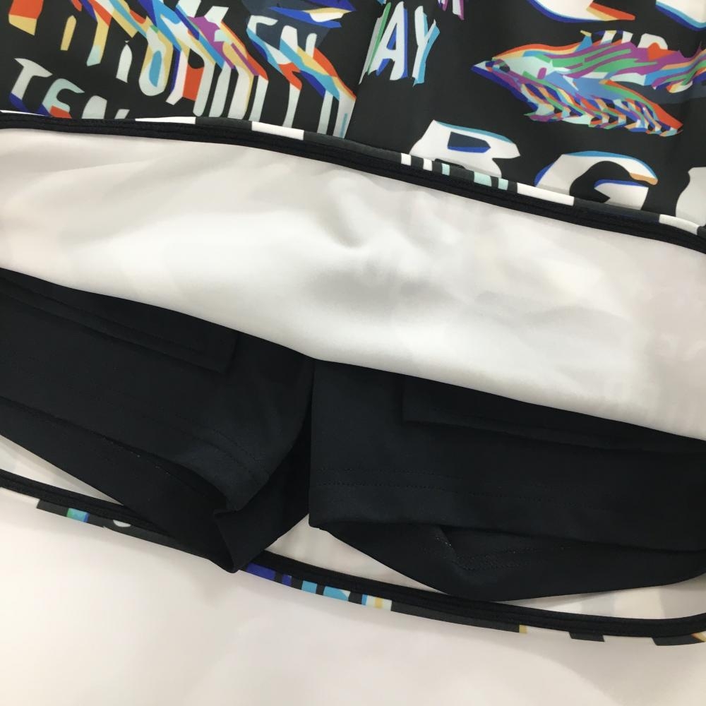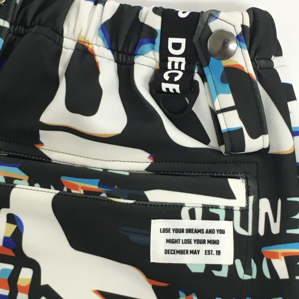 【超美品】ディセンバーメイ ストレッチスカート 黒×白×マルチカラー 総柄 ダンボールニット レディース S ゴルフウェア DECEMBERMAY