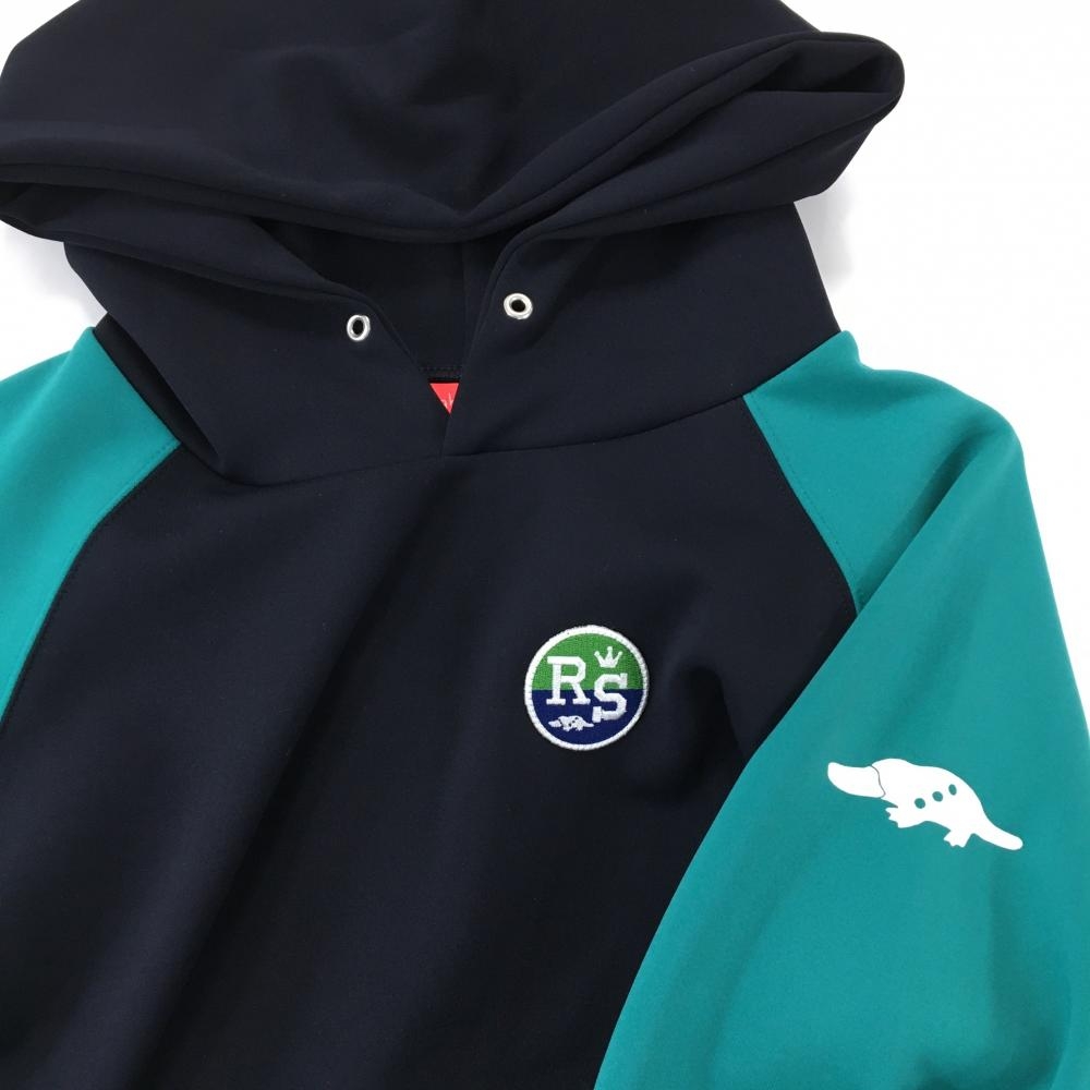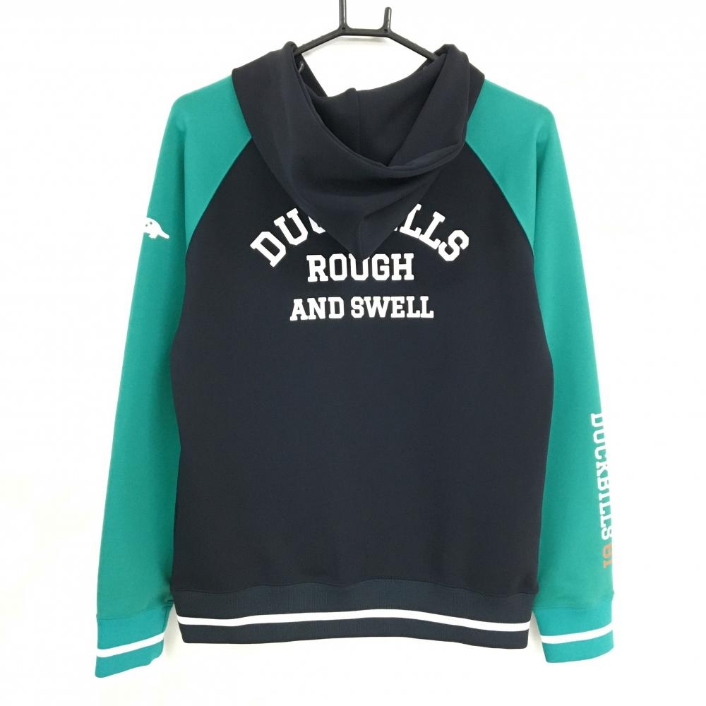 【超美品】ラフアンドスウェル パーカー ネイビー×グリーン 腹部ポケット ワッペン レディース S ゴルフウェア 2024年モデル rough&swell