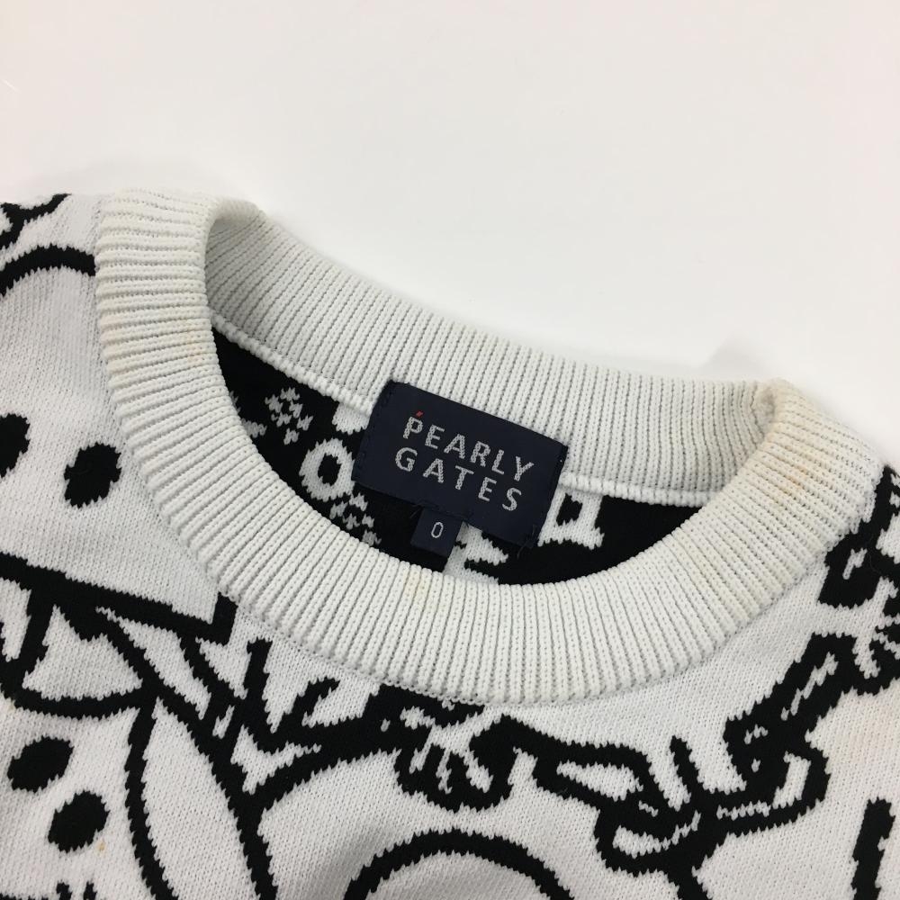 パーリーゲイツ×MR.MENLITLLEMISS セーター 白×黒 総柄 ウール混 ニット レディース 0(S) ゴルフウェア PEARLY GATES