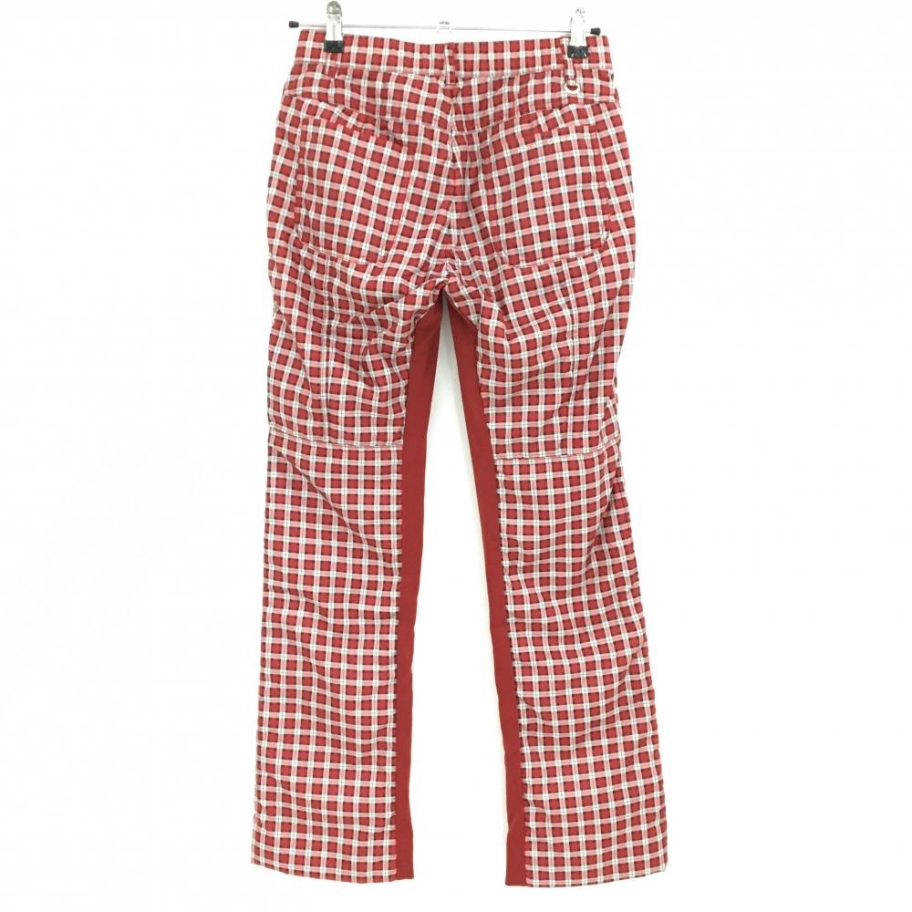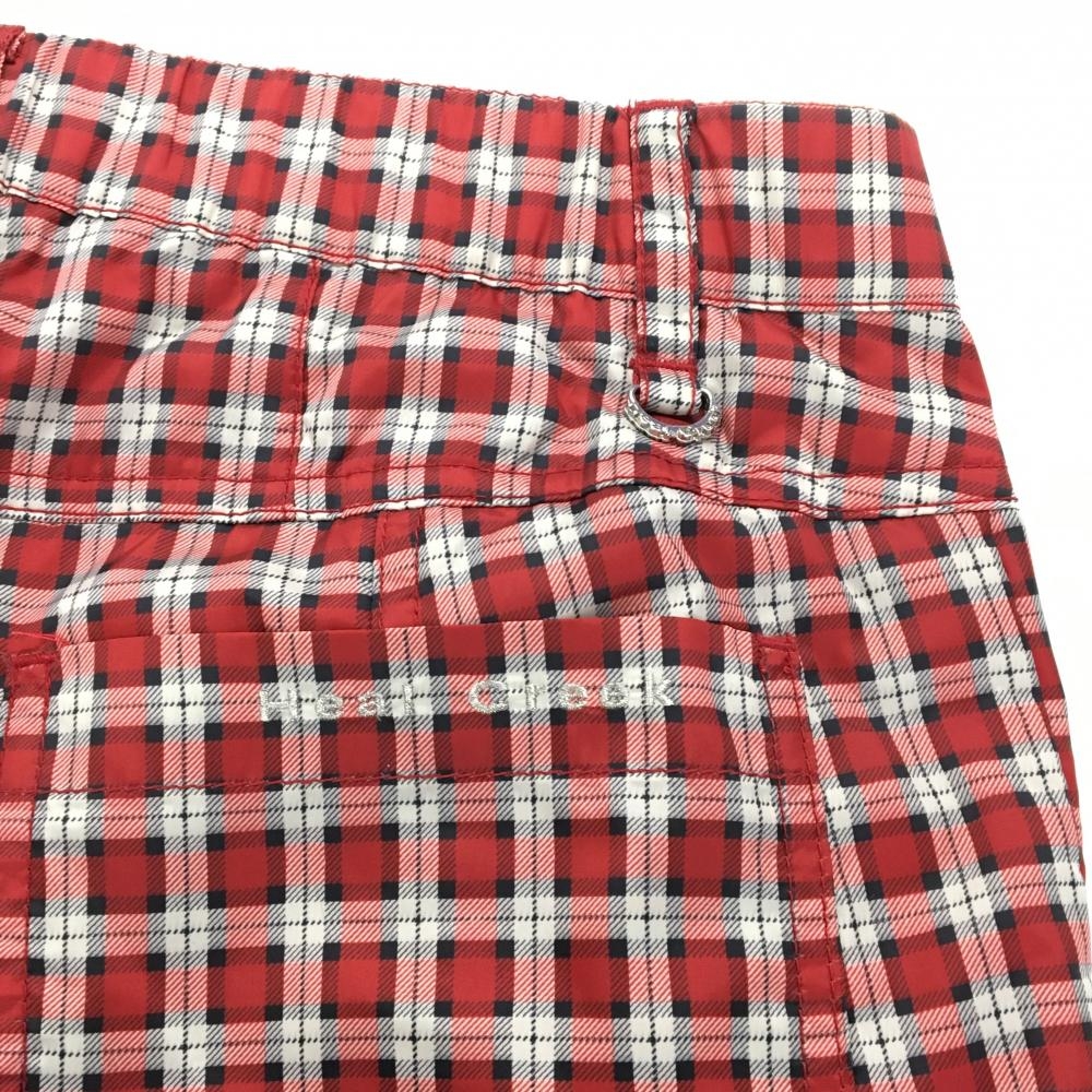 【美品】ヒールクリーク 中綿パンツ レッド×白 チェック ロゴ刺しゅう レディース 40(M) ゴルフウェア Heal Creek