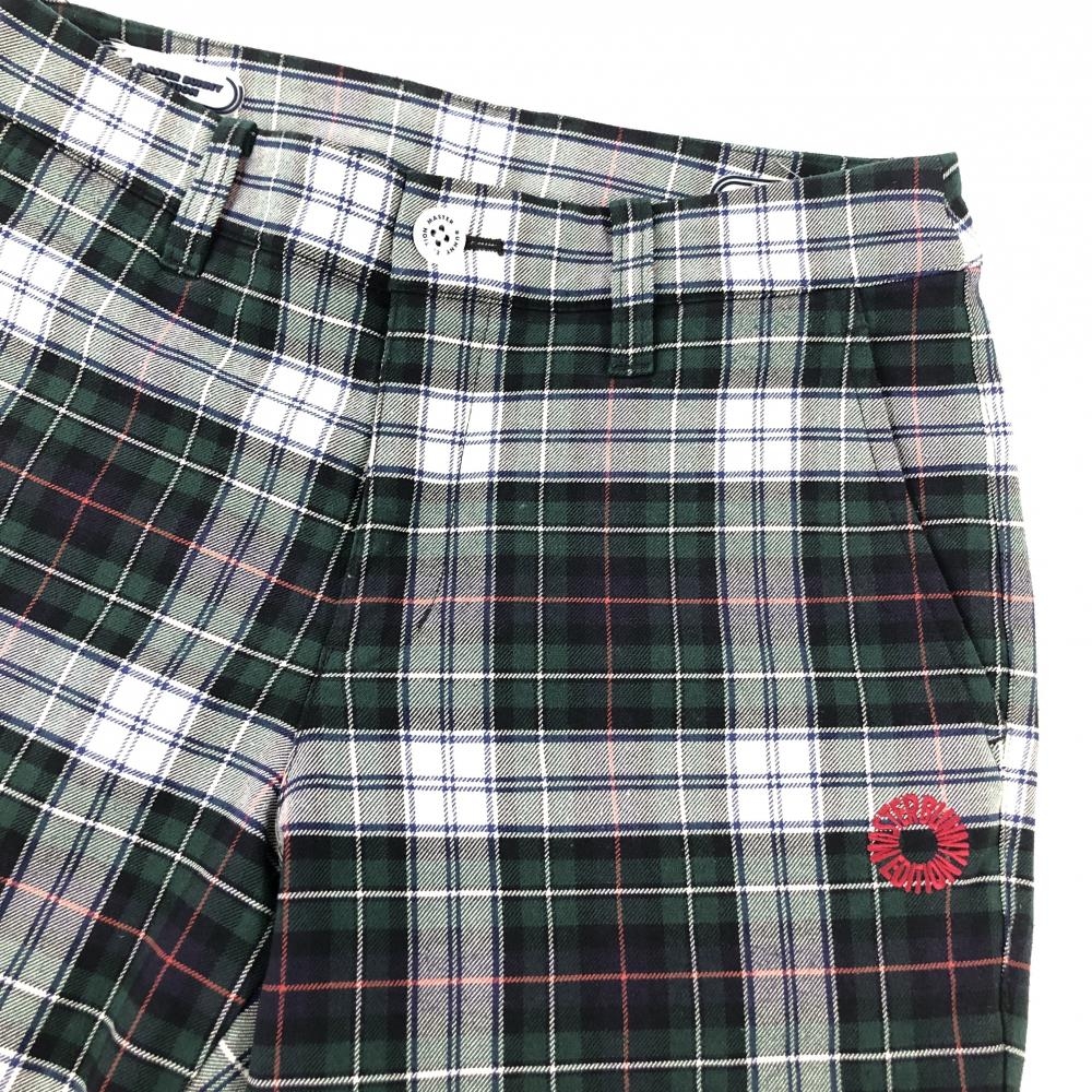 【美品】マスターバニー パンツ グリーン×ネイビー×白 チェック 裏地付き レディース 0(S) ゴルフウェア MASTER BUNNY EDITION