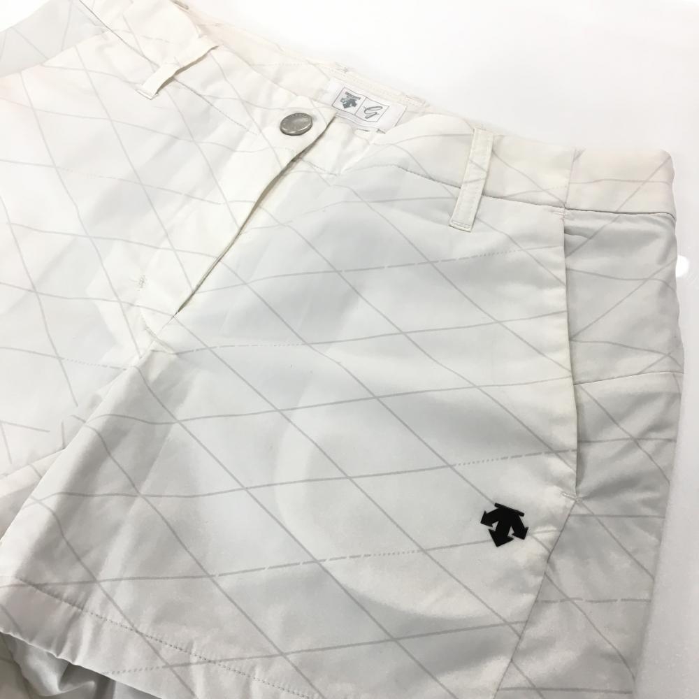 デサントゴルフ 中綿ショートパンツ 白 斜め格子柄 中田英寿 ポケット口・裾複数汚れ レディース 64/M ゴルフウェア DESCENTE