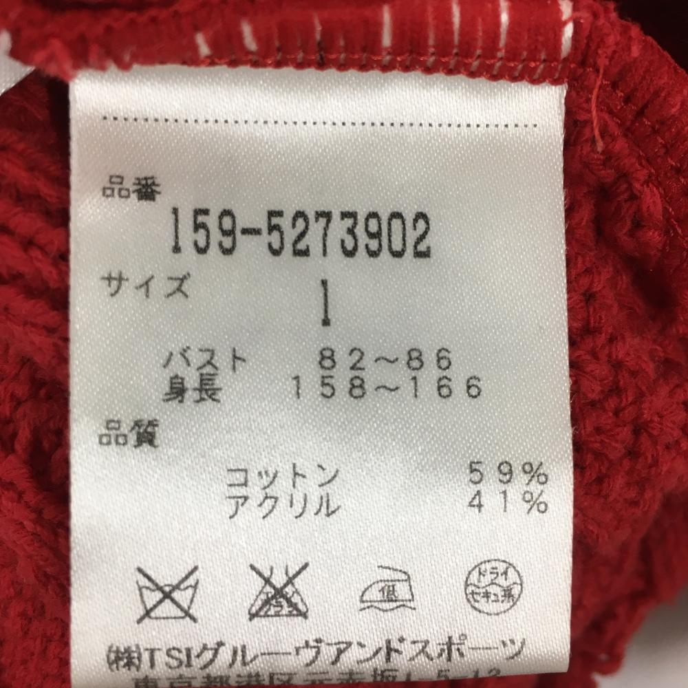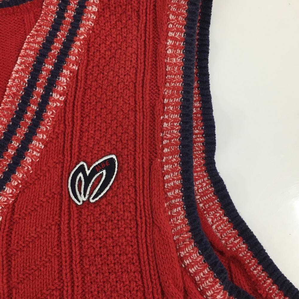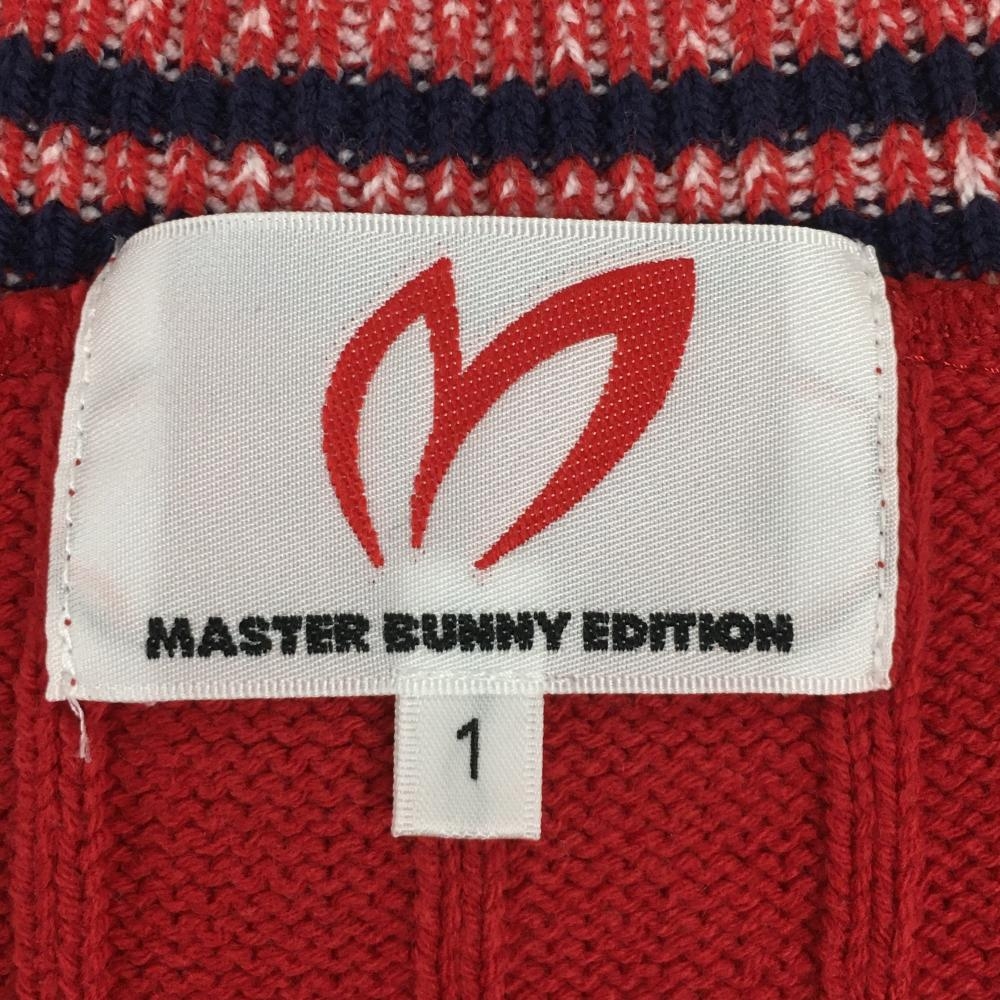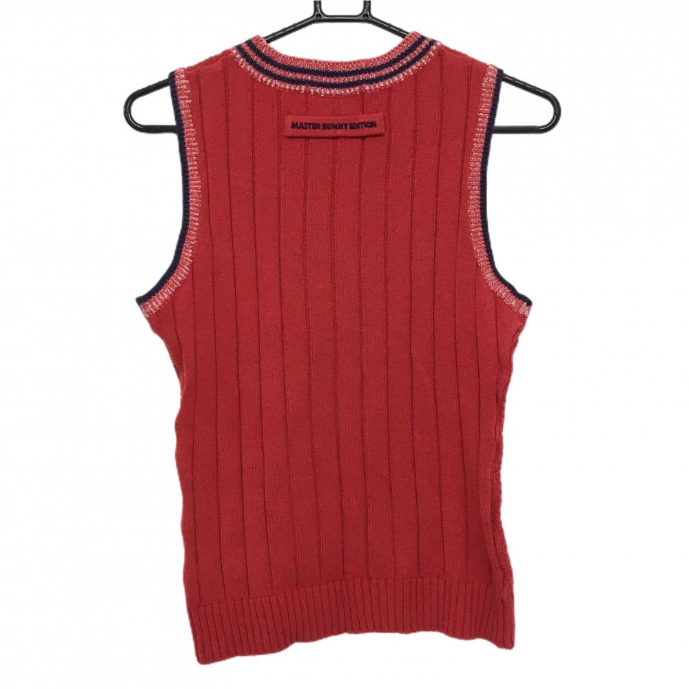マスターバニー ニットベスト レッド×ネイビー Vネック ケーブル編み コットン混 レディース 1(M) ゴルフウェア MASTER BUNNY EDITION