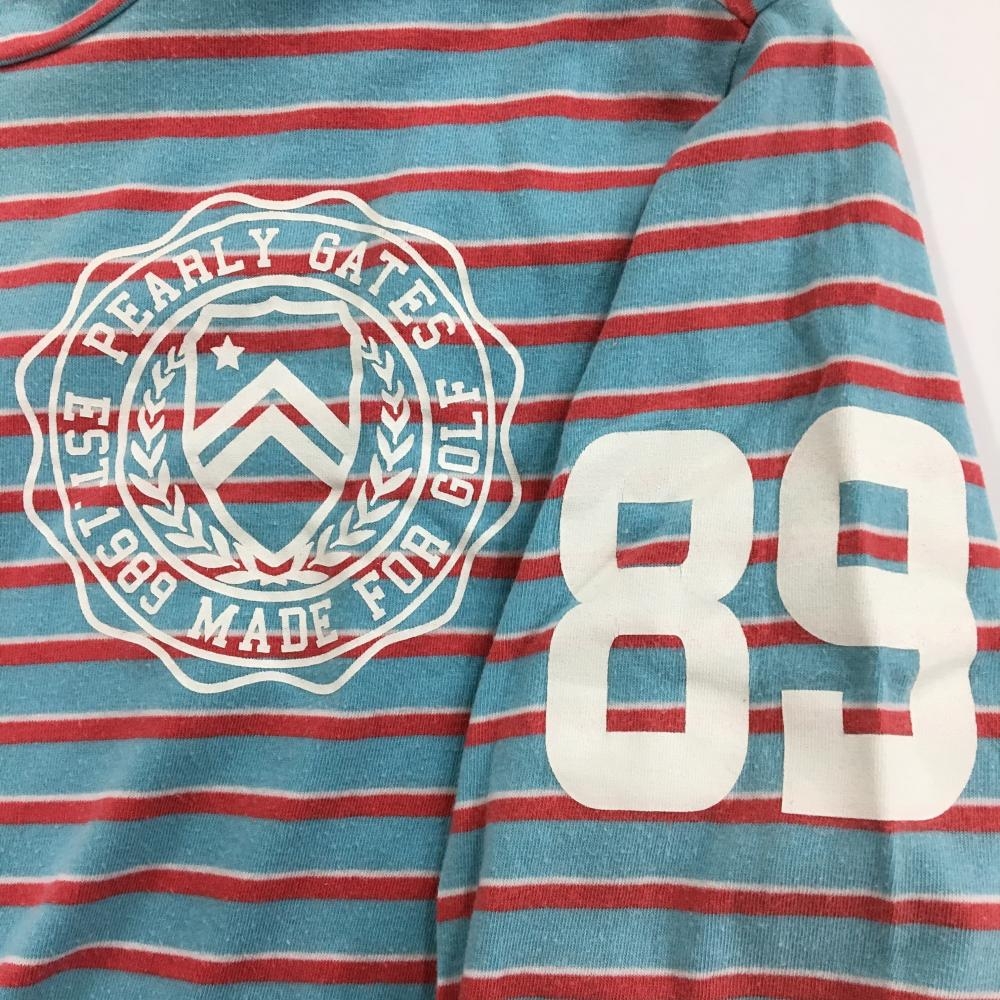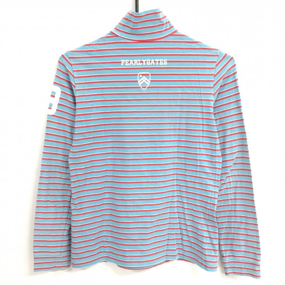 パーリーゲイツ 長袖ハイネックシャツ ライトブルー×レッド ボーダー レディース 1(M) ゴルフウェア PEARLY GATES