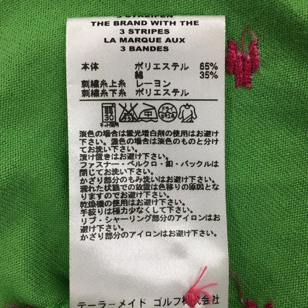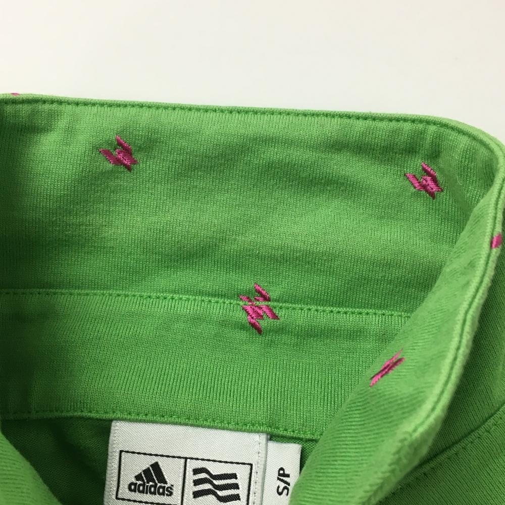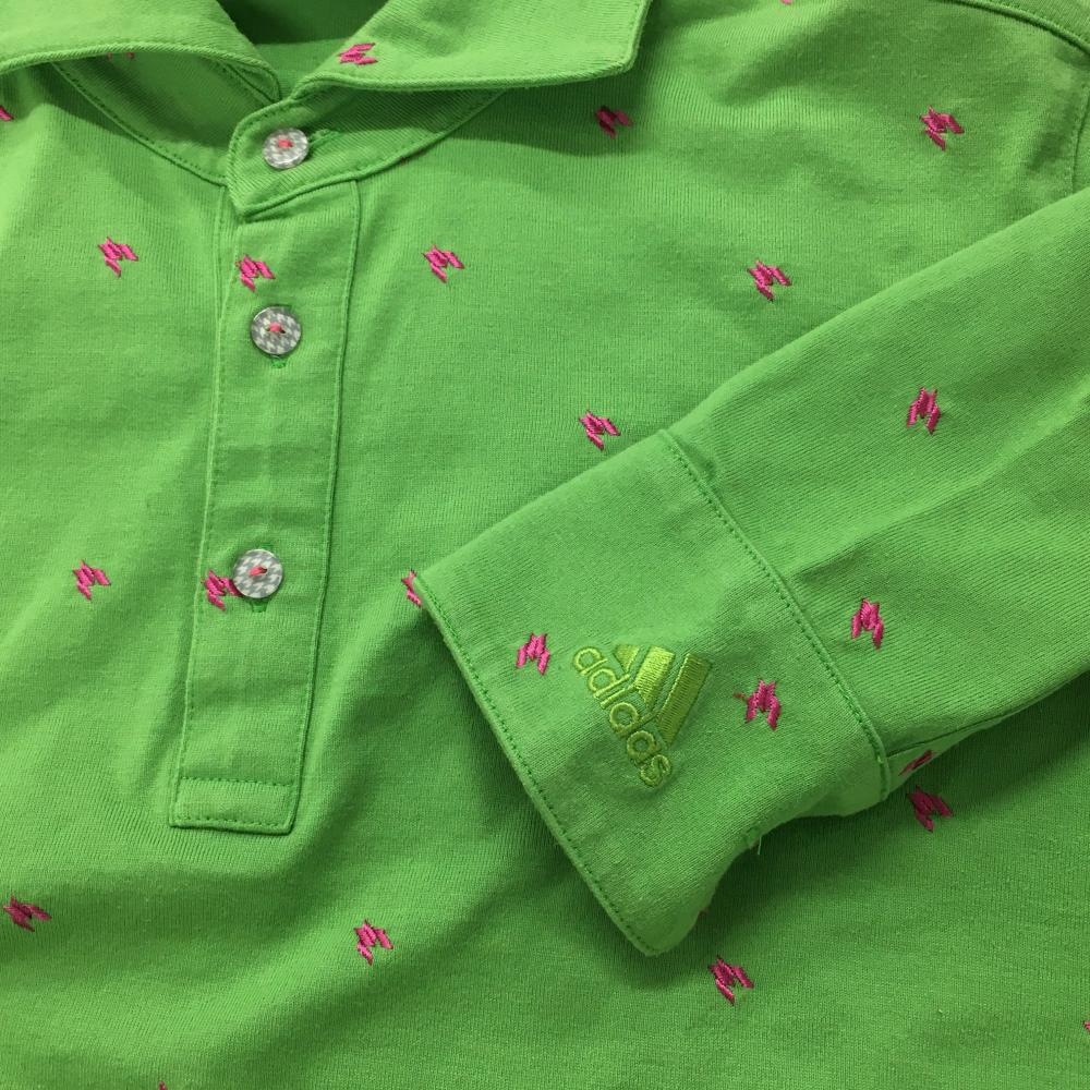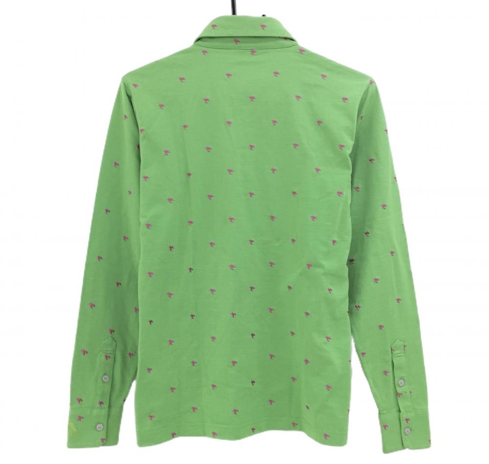 アディダス 長袖ポロシャツ ライトグリーン×ピンク 総柄 千鳥格子刺しゅう メンズ S/P ゴルフウェア adidas