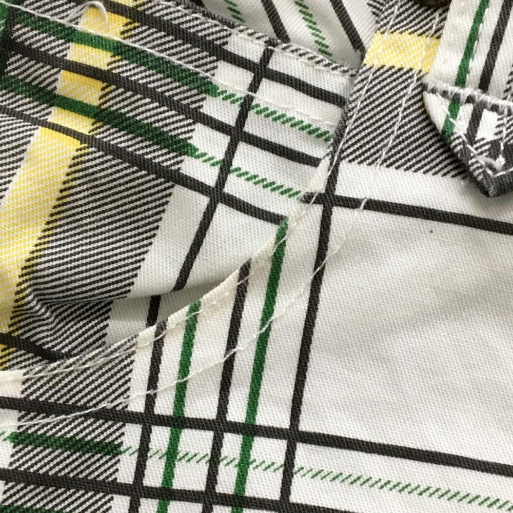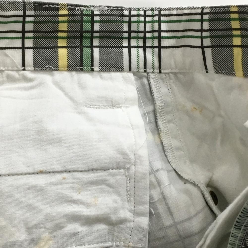 【美品】バーディーハント パンツ 白×グレー×グリーン チェック ロゴ刺しゅう メンズ 30 ゴルフウェア Birdie hunt