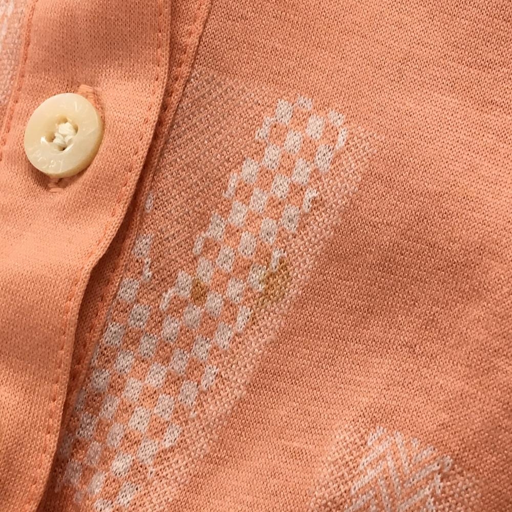 ランバンスポール 長袖ハイネックシャツ サーモンオレンジ系×白 英字総柄 綿100% レディース 38(M) ゴルフウェア LANVIN SPORT