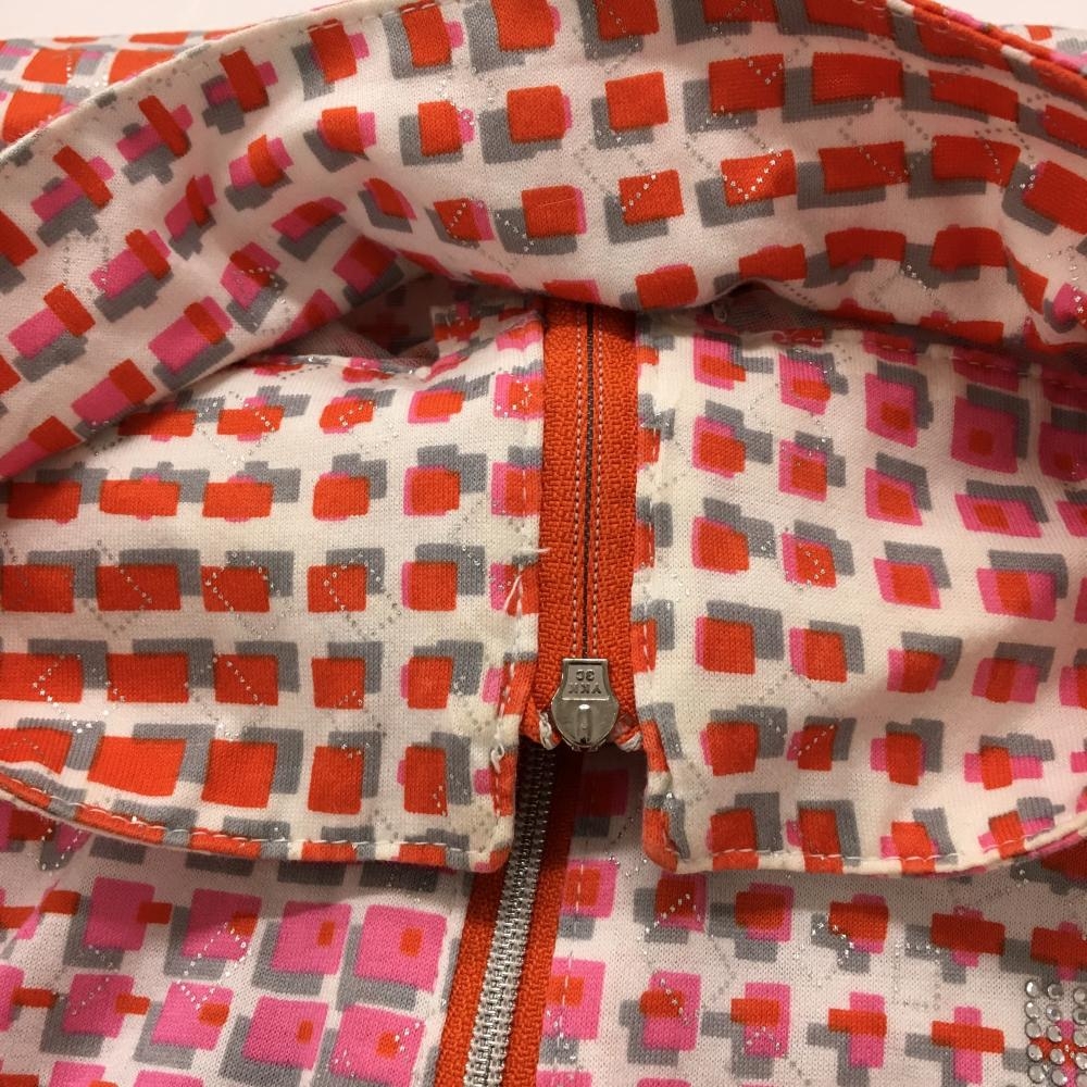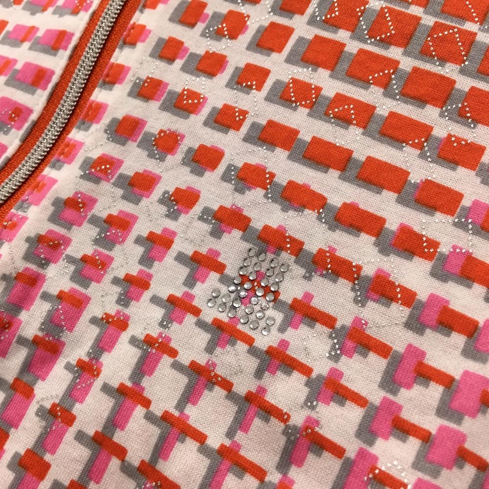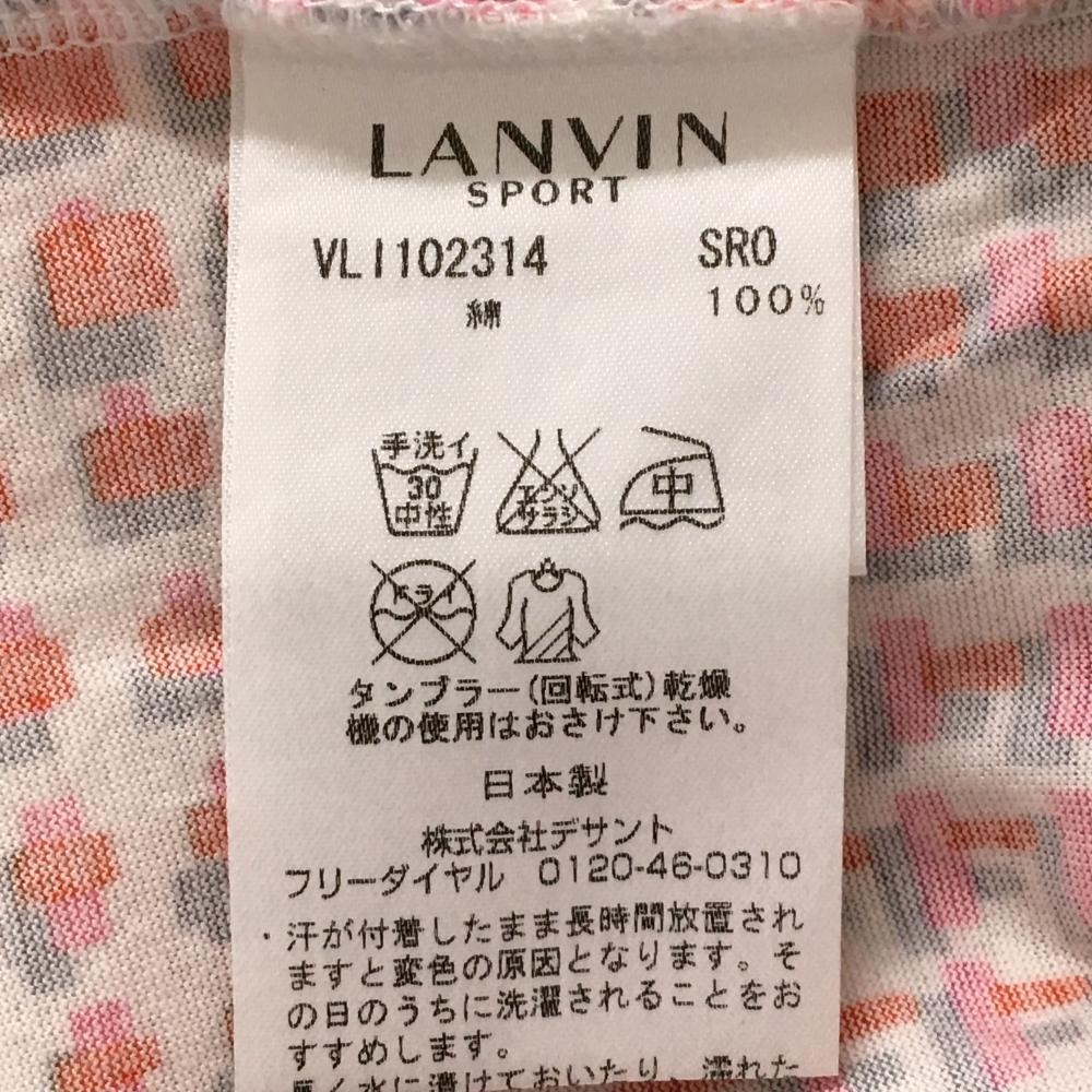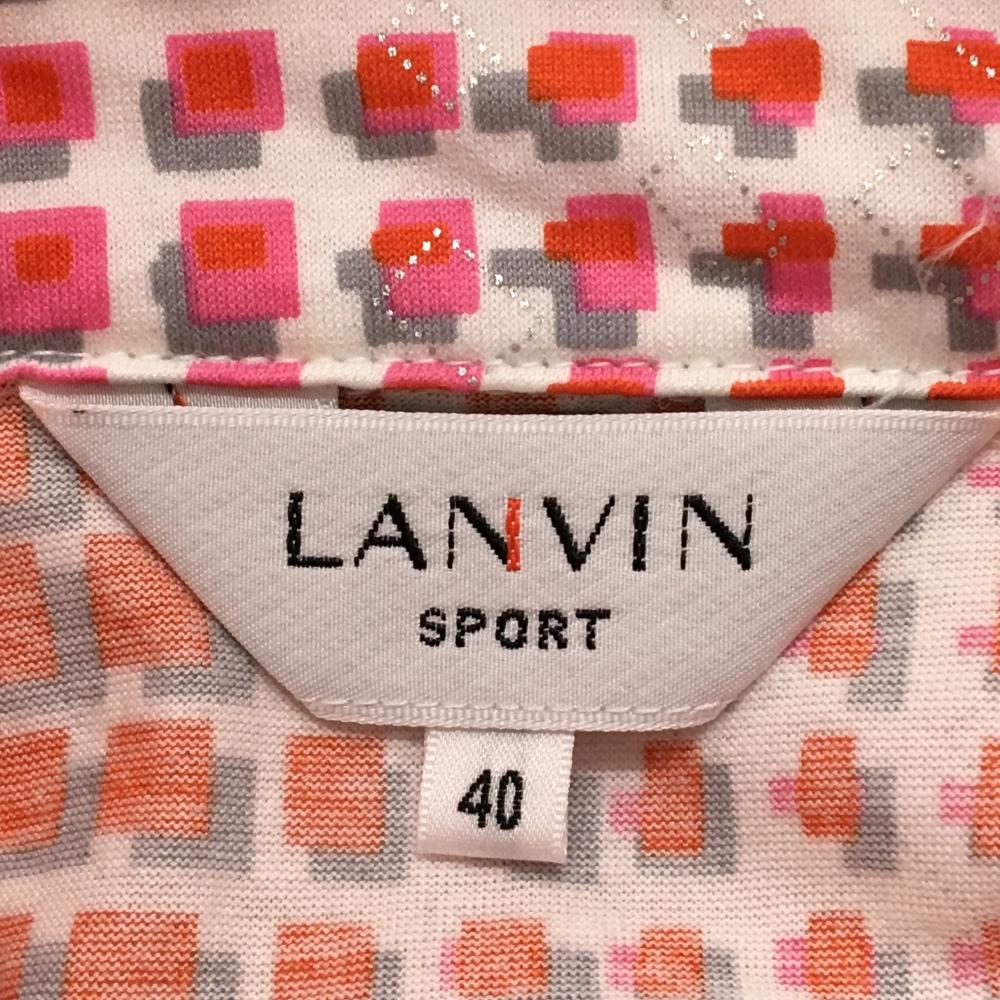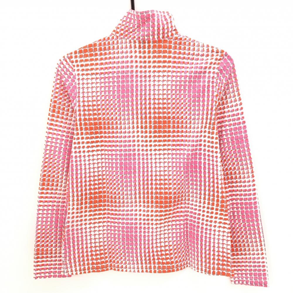 【美品】ランバンスポール 長袖ハイネックシャツ 白×レッド×ピンク スクエア総柄 レディース 40(L) ゴルフウェア LANVIN SPORT