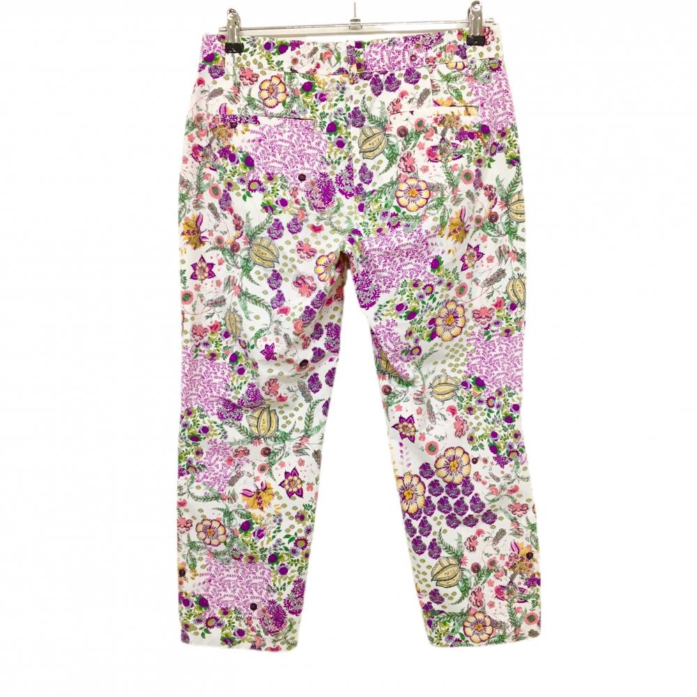 【超美品】シェルボ ストレッチパンツ 白×パープル×マルチカラー 花柄 ナイロン混 レディース S ゴルフウェア CHERVO