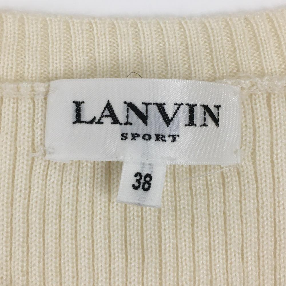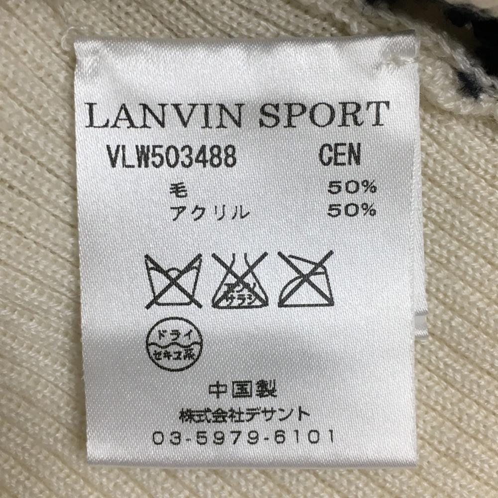 【美品】ランバンスポール ニットベスト 白×黒 前面透かし編み ウール混 レディース 38(M) ゴルフウェア LANVIN SPORT