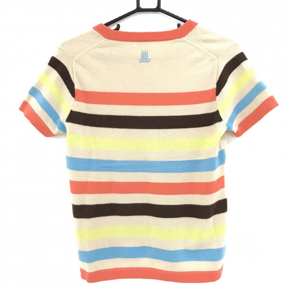 【超美品】ランバンスポール 半袖スキッパーセーター ベージュ×サーモンオレンジ レディース 38(M) ゴルフウェア LANVIN SPORT