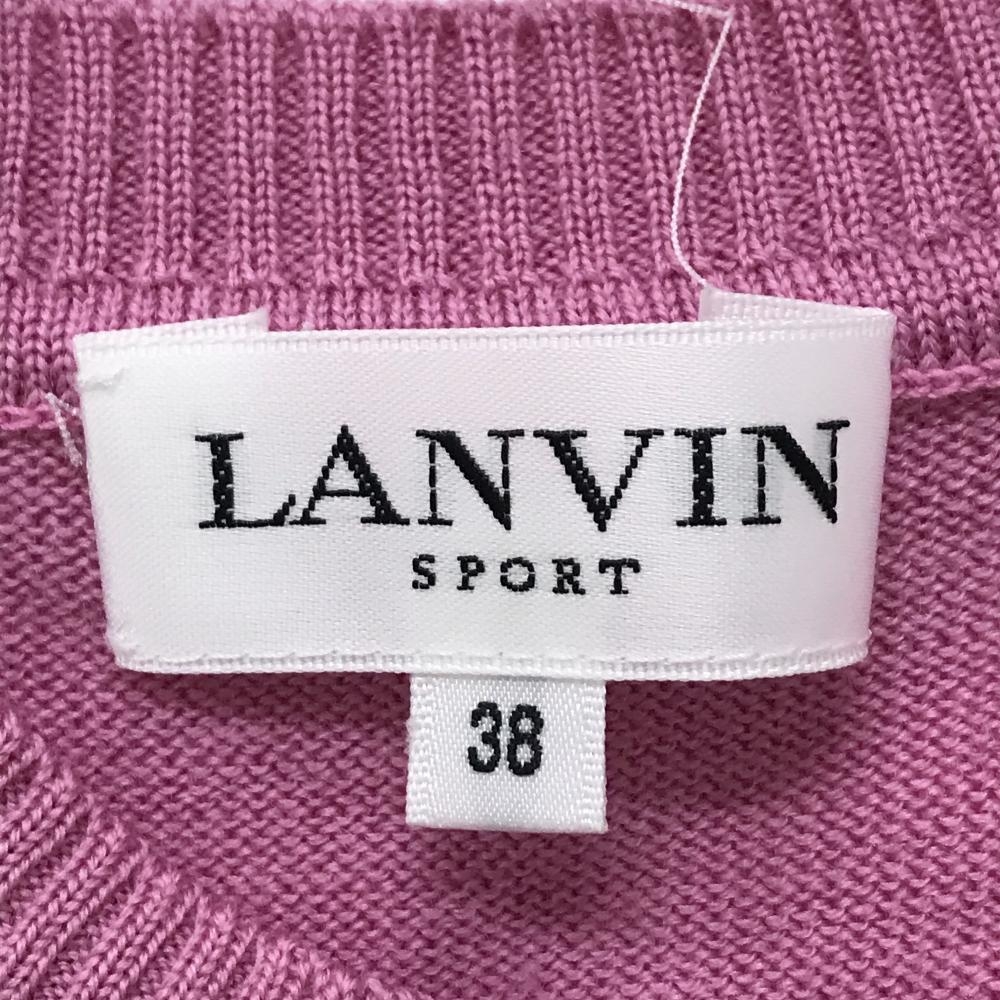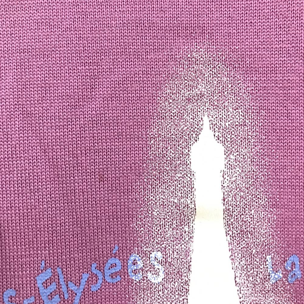 ランバンスポール ニットベスト ピンク×白 ウール100% エッフェル塔 レディース 38(M) ゴルフウェア LANVIN SPORT