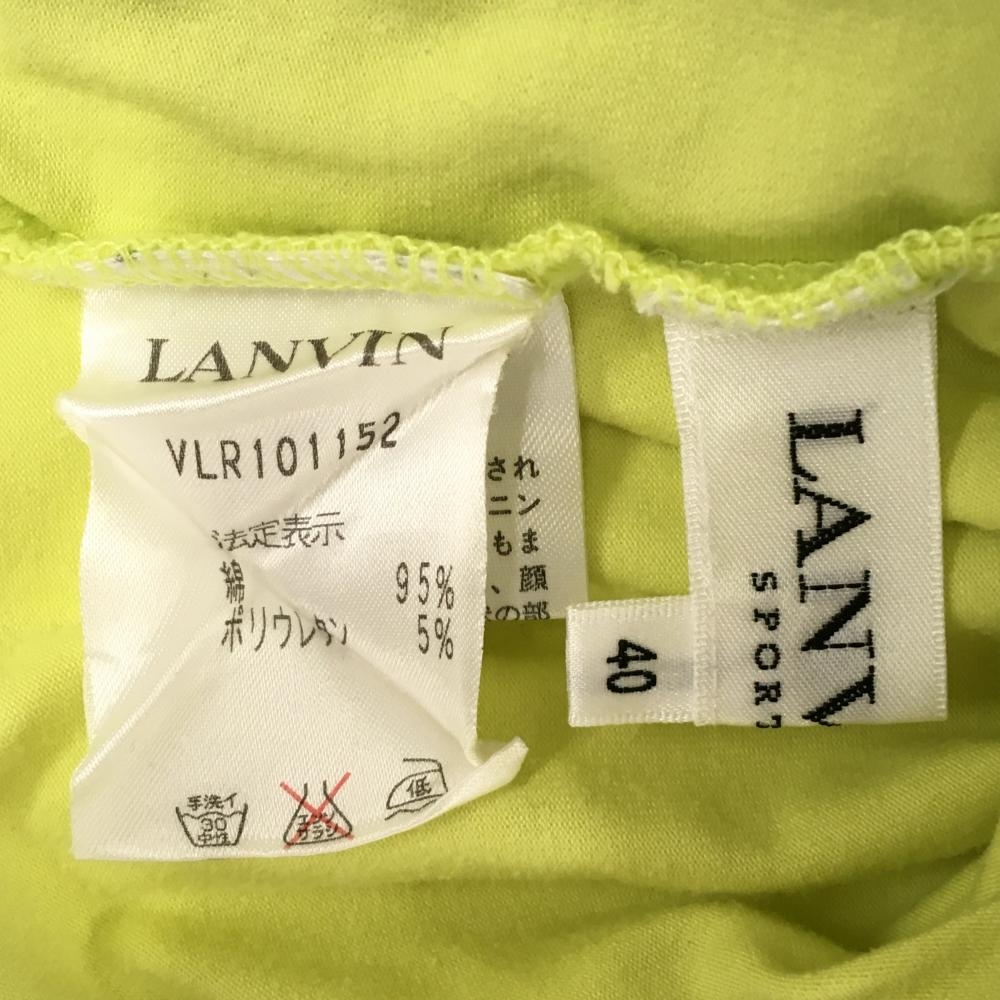 ランバンスポール 長袖ハイネックシャツ ライムイエロー系×ブラウン系 前面一部ロゴ総柄 レディース 40(L) ゴルフウェア LANVIN SPORT