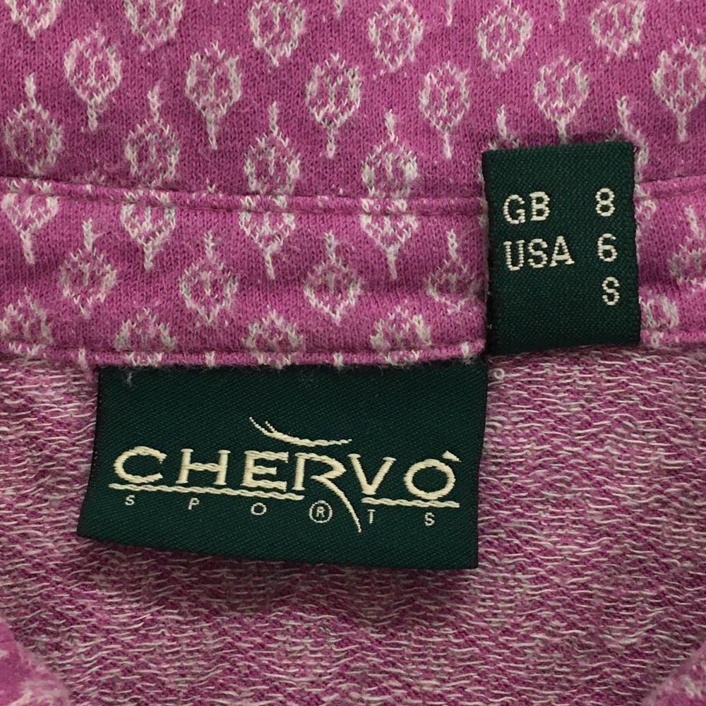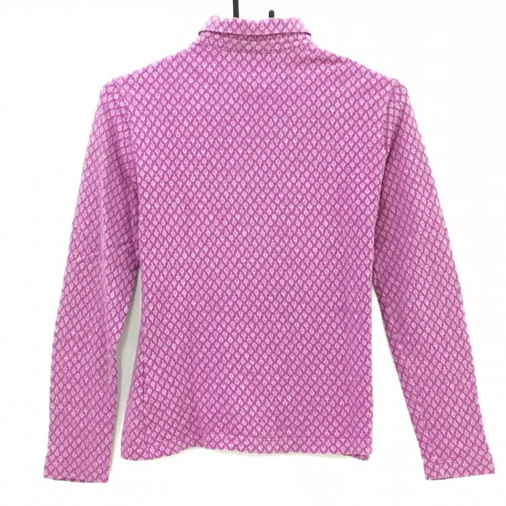 【美品】シェルボ 長袖ポロシャツ ピンク系×白 総柄 スナップボタン レディース S ゴルフウェア CHERVO