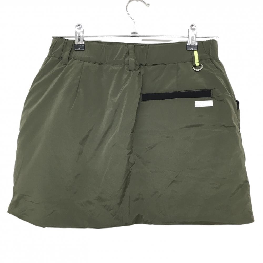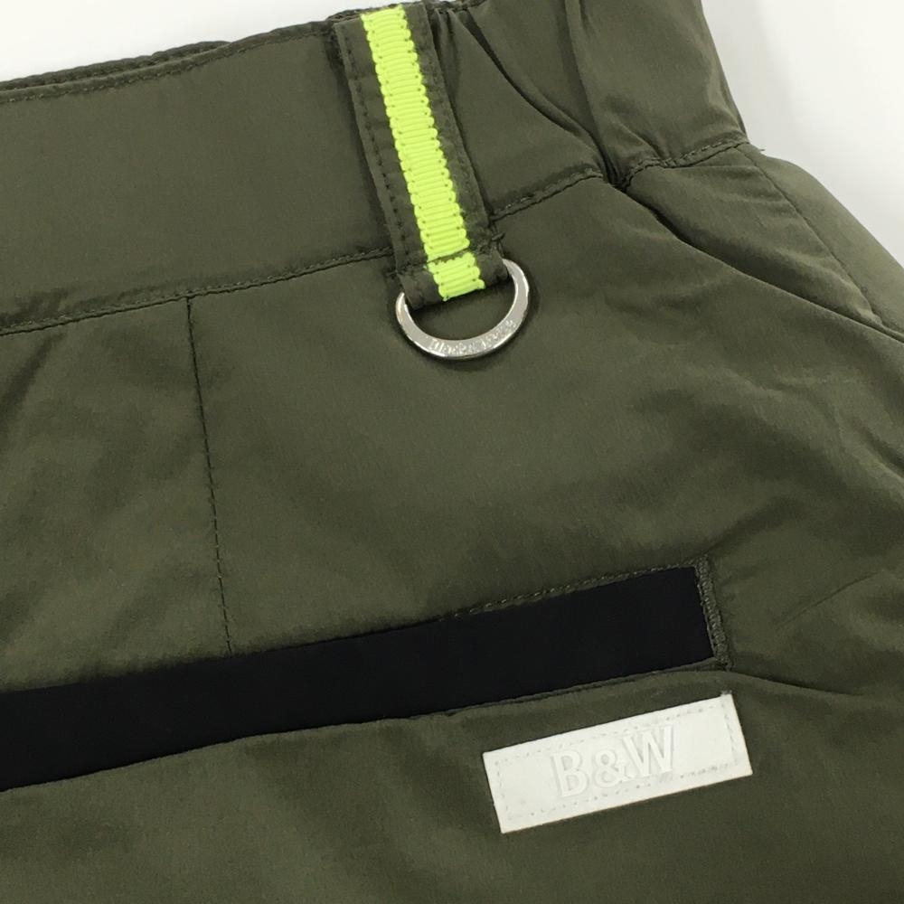 【超美品】ブラックアンドホワイト 中綿スカート カーキ×黒 フロントジップ 裾ロゴ ナイロン レディース M ゴルフウェア Black&White