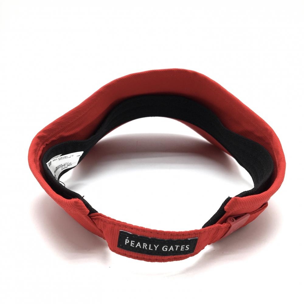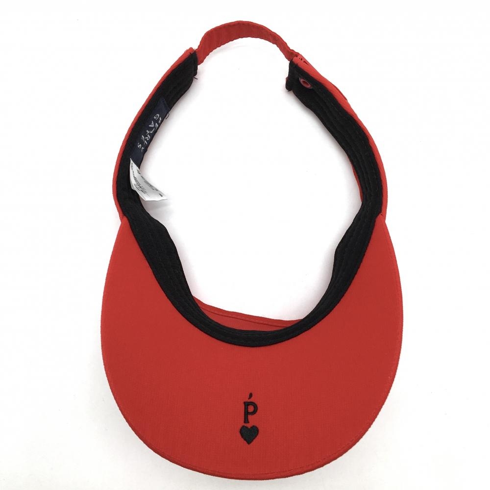 【超美品】パーリーゲイツ サンバイザー レッド ロゴ黒 つば裏ハート刺しゅう FR ゴルフウェア PEARLY GATES