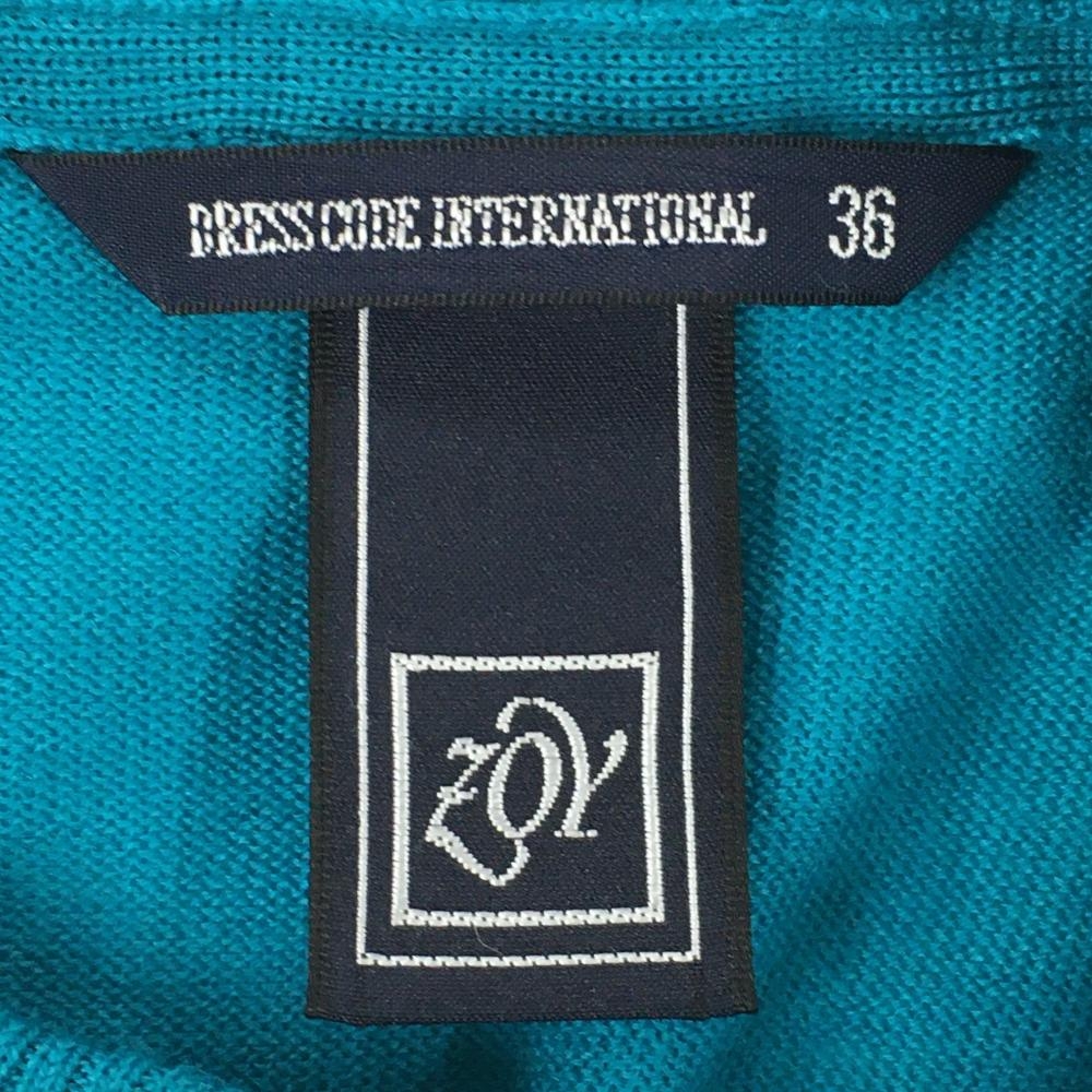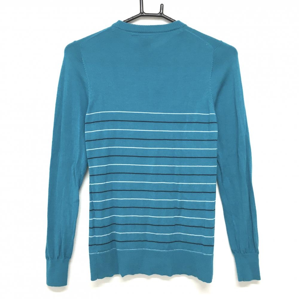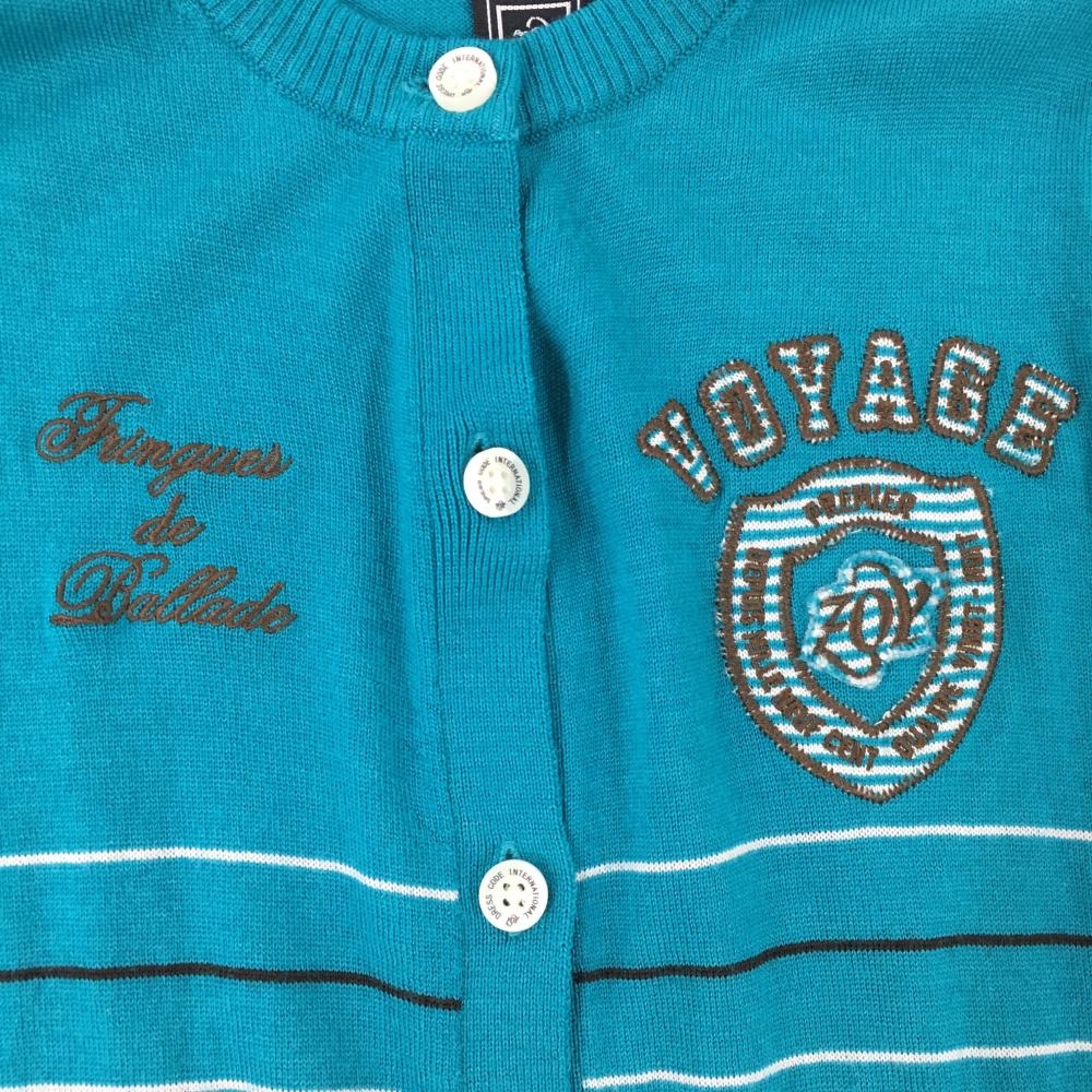 【美品】ゾーイ カーディガン ライトブルー系×ブラウン 一部ボーダー ウール100% レディース 36(S) ゴルフウェア ZOY