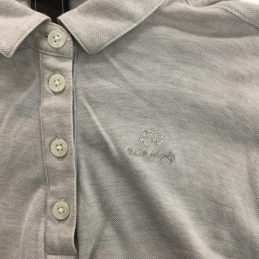 【超美品】ゾーイ 長袖ポロシャツ 杢グレー ラインストーンロゴ 薄手 ウール混 レディース 38(M) ゴルフウェア ZOY