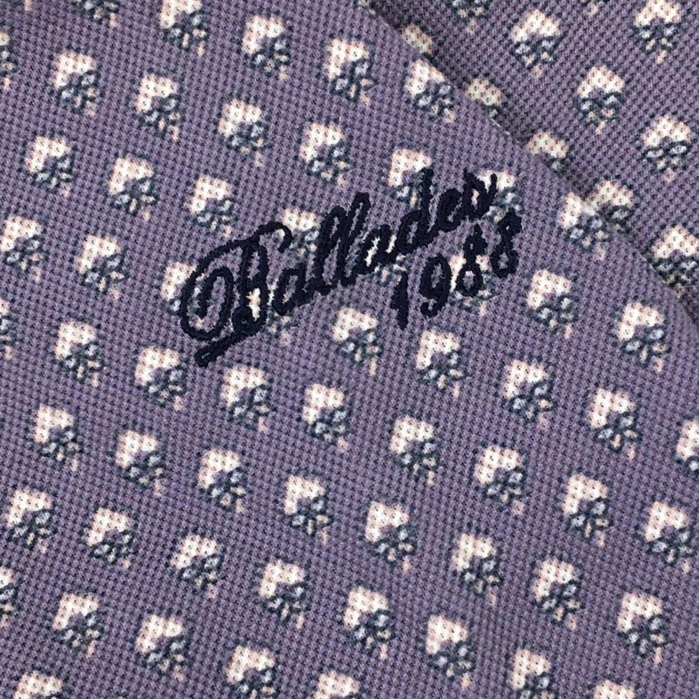 【超美品】ゾーイ 長袖ポロシャツ パープル×白 総柄 ロゴ刺しゅう ボタンダウン レディース 36(S) ゴルフウェア ZOY