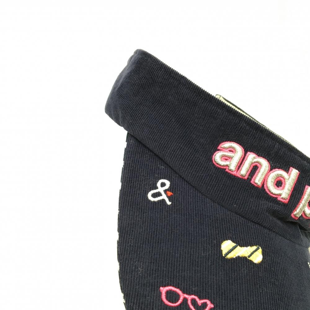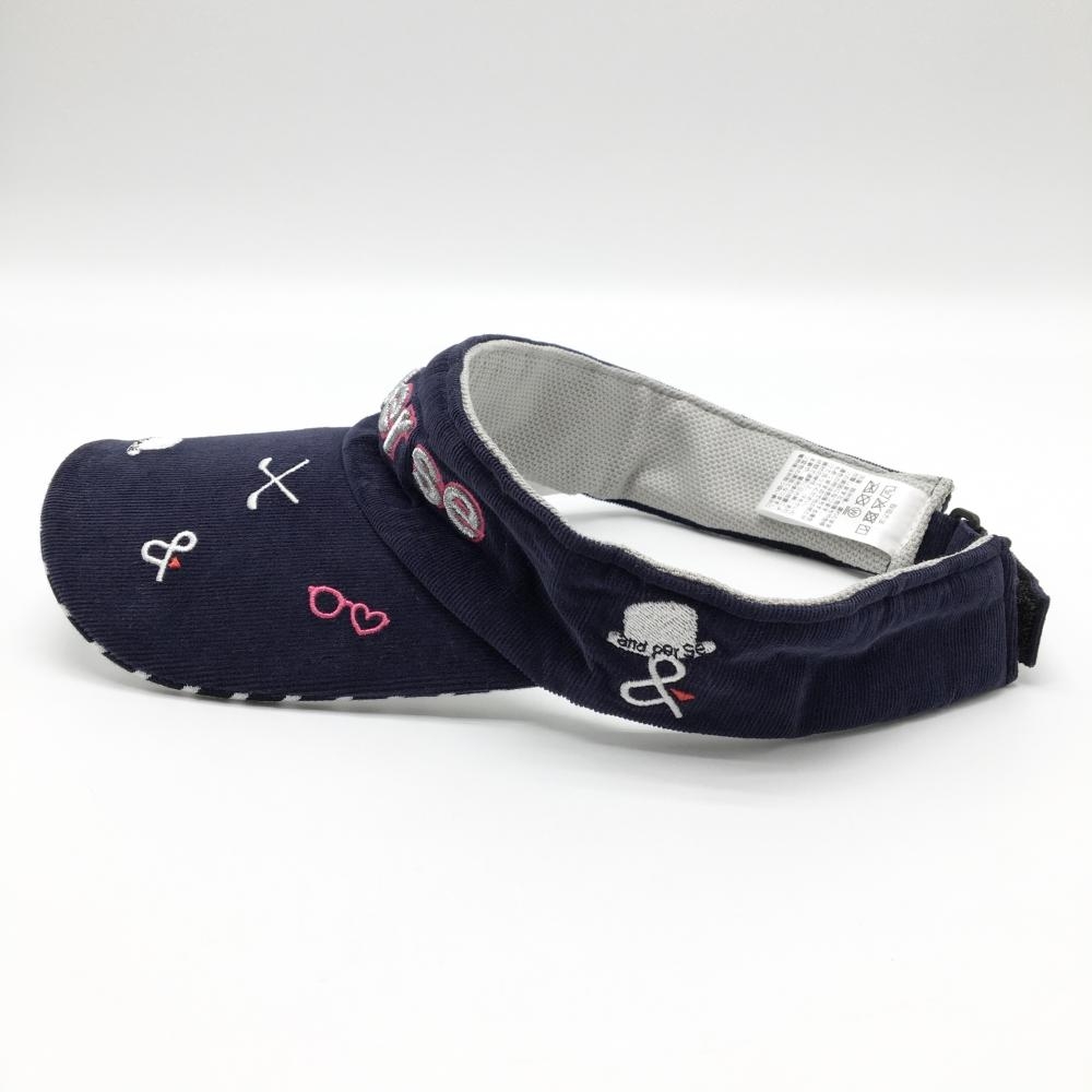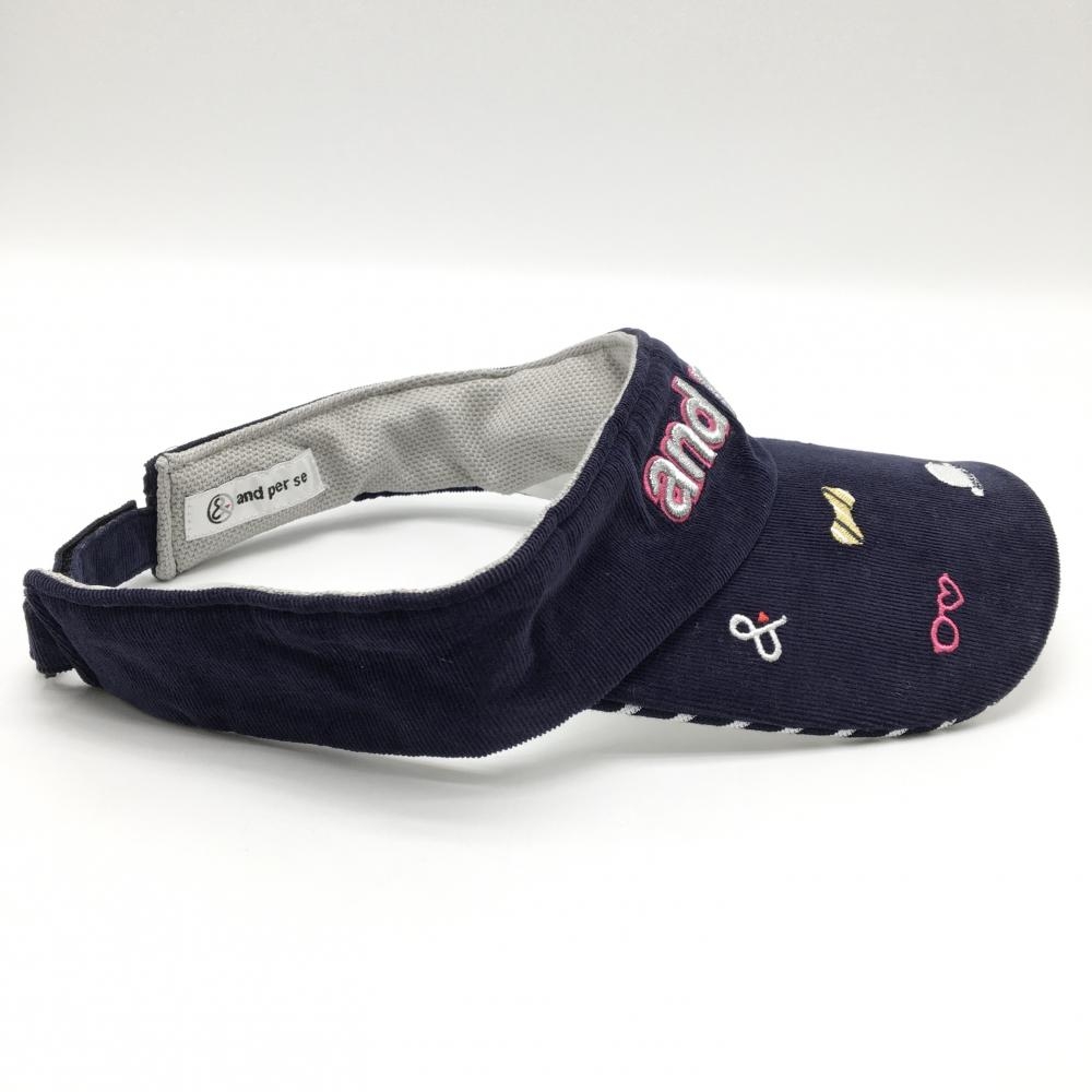 アンパスィ コーデュロイサンバイザー ネイビー 立体ロゴ刺しゅう ラメ糸 レディース F ゴルフウェア and per se