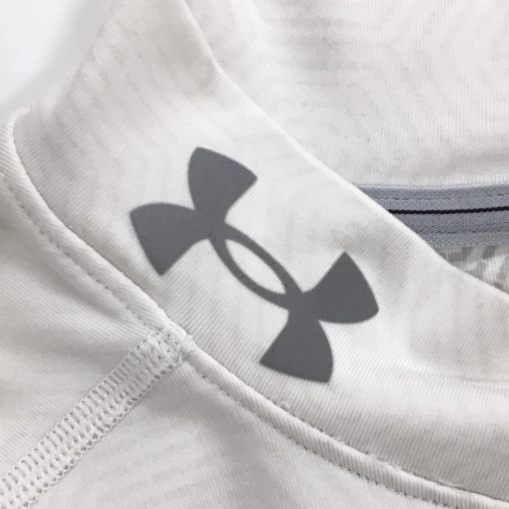 【美品】アンダーアーマー インナーシャツ 白×ライトグレー 総柄 メンズ MD/M/M ゴルフウェア UNDER ARMOUR