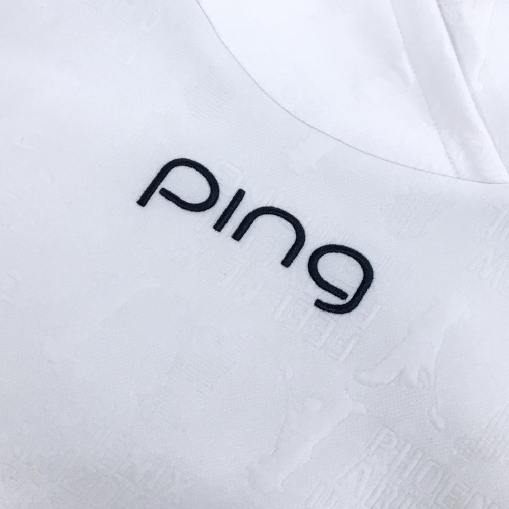 ピン ハイネックトレーナー 白 ロゴ総柄地模様 レディース M ゴルフウェア PING
