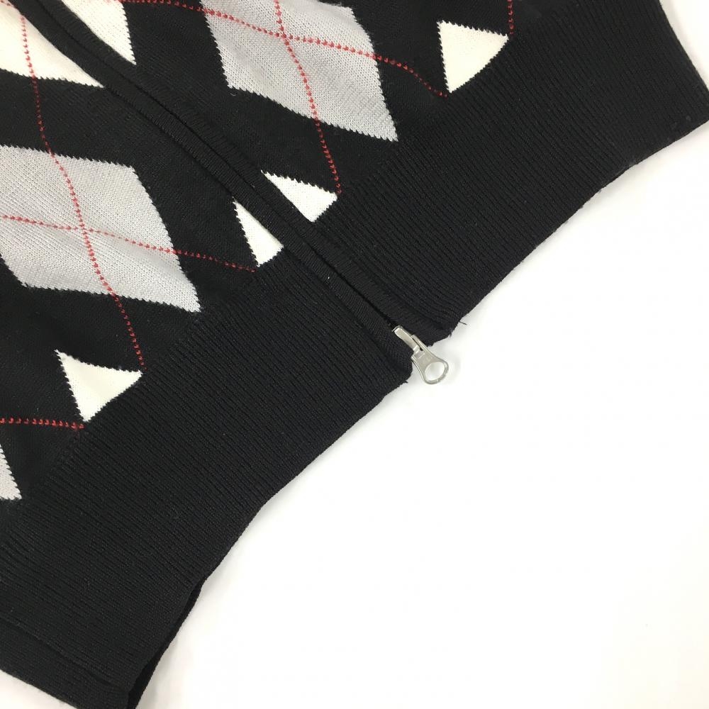 タイトリスト ニットジャケット 黒×白×グレー 前身頃アーガイル 蓄熱裏地 メンズ M ゴルフウェア TITLEIST