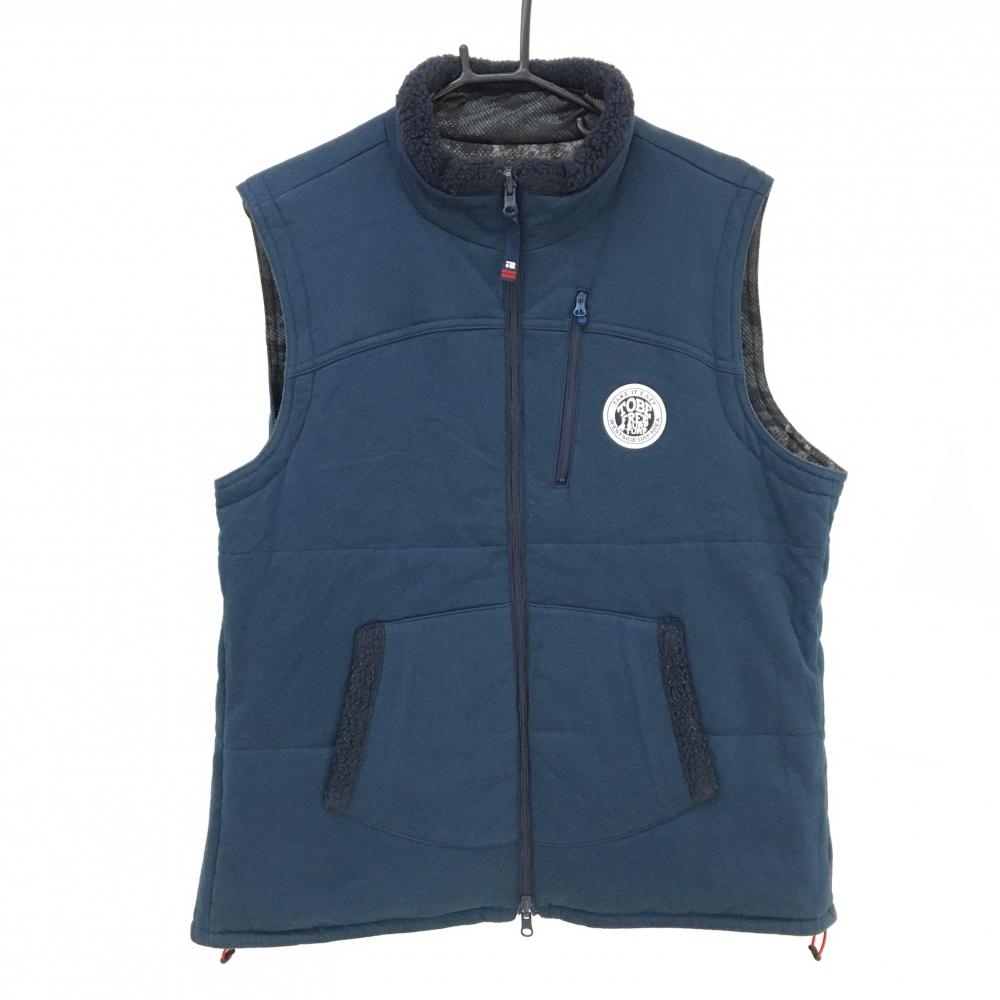 【美品】ロサーセン リバーシブルベスト 黒×レッド 総柄 裏ネイビー 一部ボア メンズ LL ゴルフウェア Rosasen