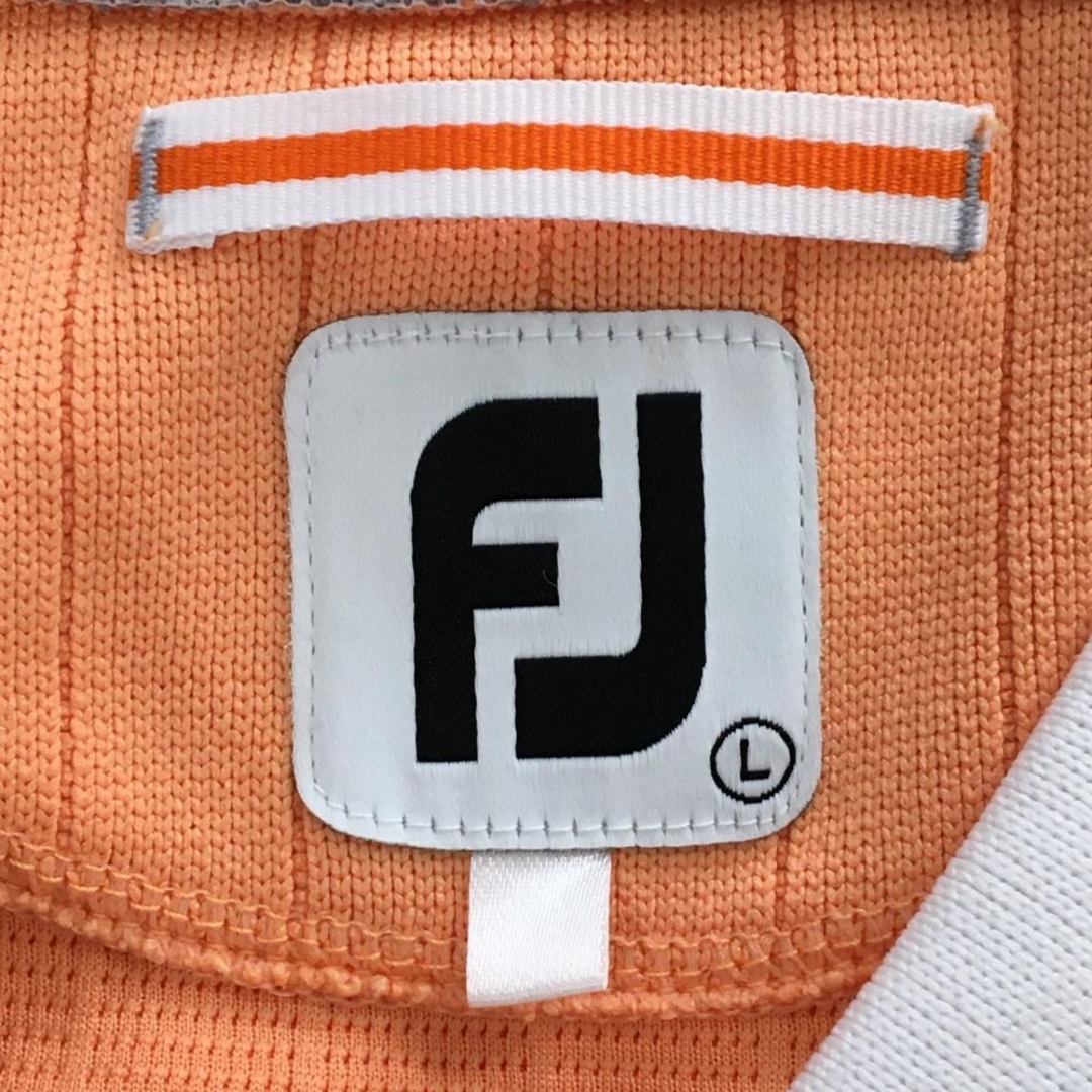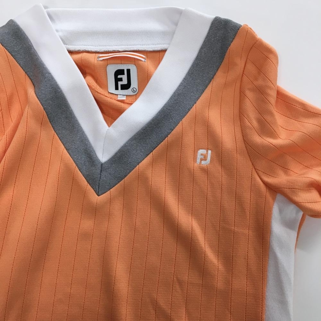 【超美品】フットジョイ 長袖Tシャツ オレンジ×白 ストライプ地模様 Vネック ロゴ刺しゅう レディース L ゴルフウェア FootJoy