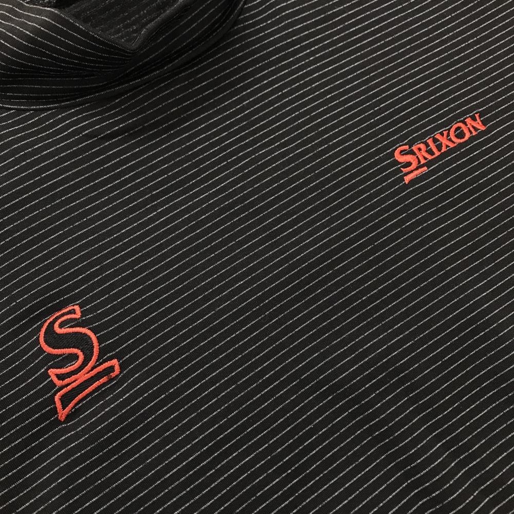 【美品】スリクソン 長袖ハイネックシャツ 黒系×白 ボーダー ロゴ刺しゅう 裏起毛 メンズ L ゴルフウェア SRIXON