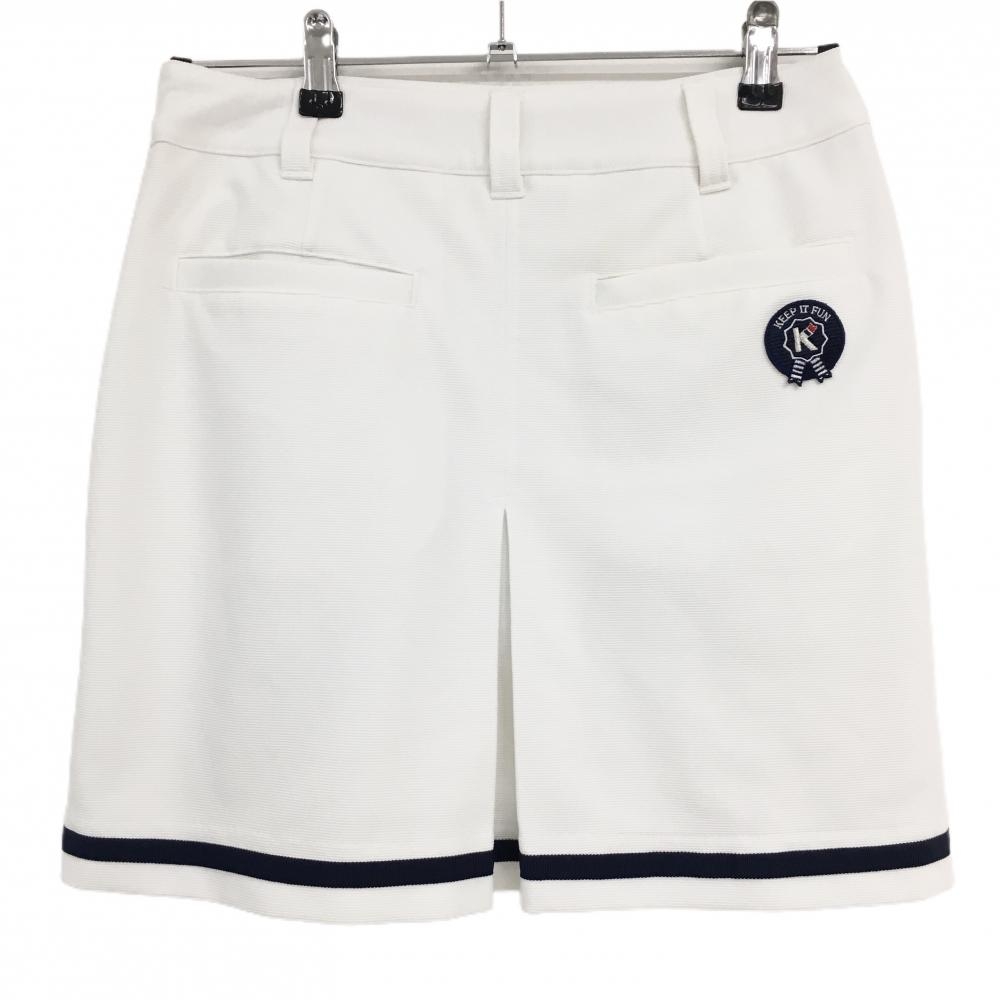 【超美品】コルウィン スカート 白×ネイビー テープライン フロントボタン 背面のみ裏地あり レディース 9 ゴルフウェア Kolwin
