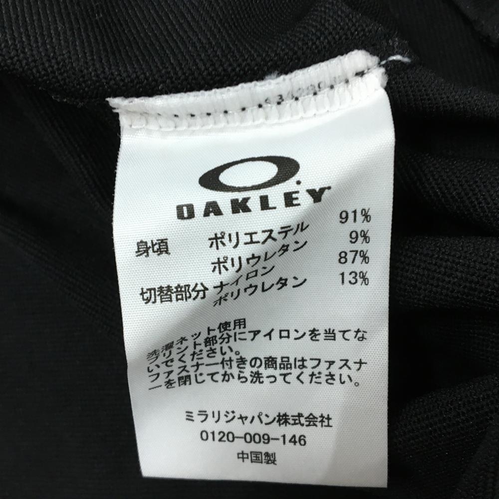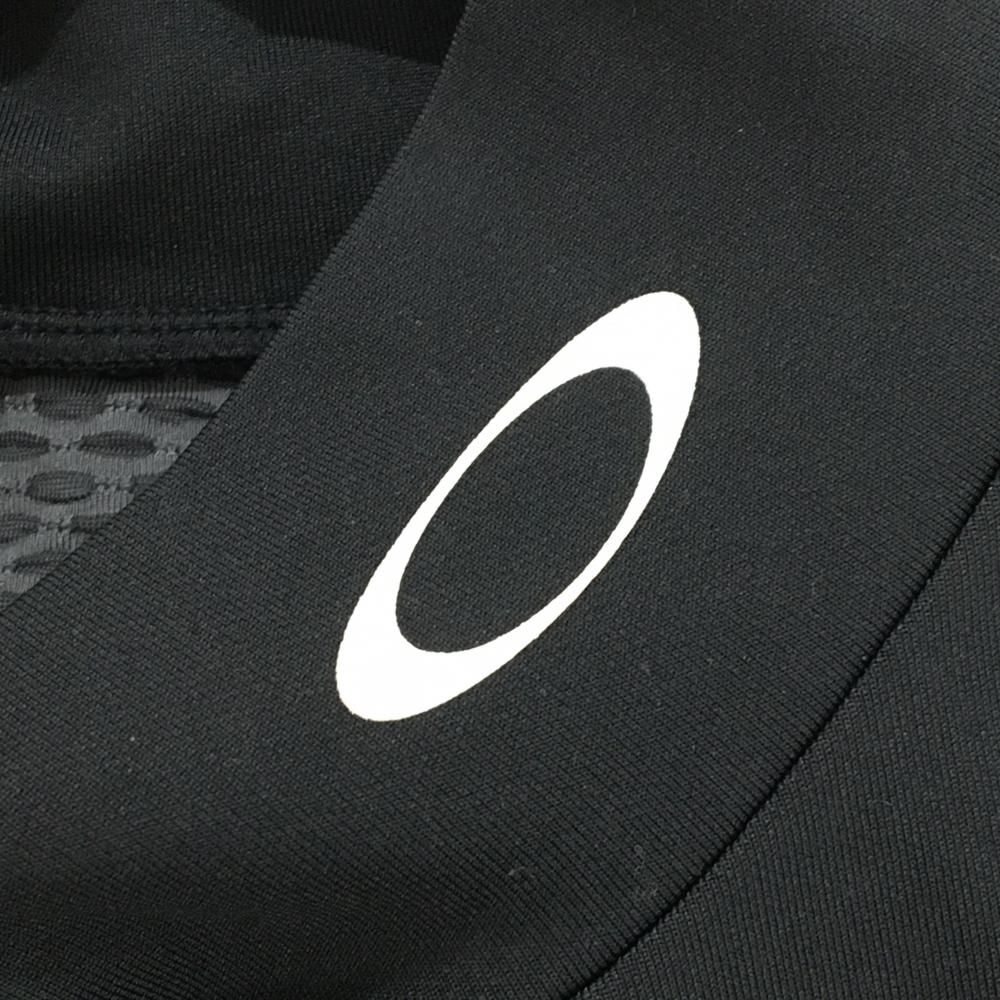 【美品】オークリー ハイネックインナーシャツ 黒×グレー 一部メッシュ ネックロゴ メンズ L ゴルフウェア Oakley