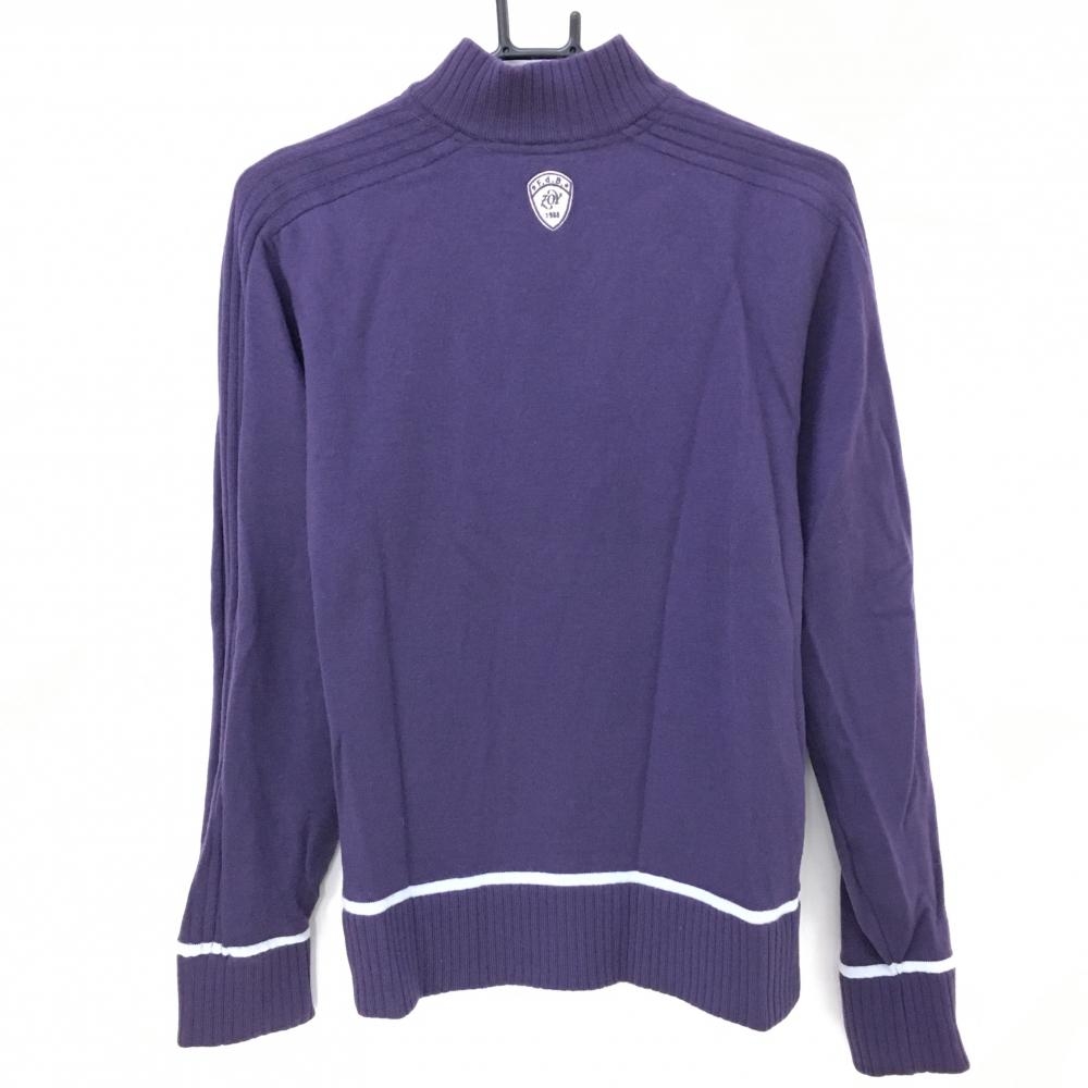 【美品】ゾーイ ニットジャケット パープル ロゴ刺しゅう 裏地付 ウール100% メンズ 2(M) ゴルフウェア ZOY