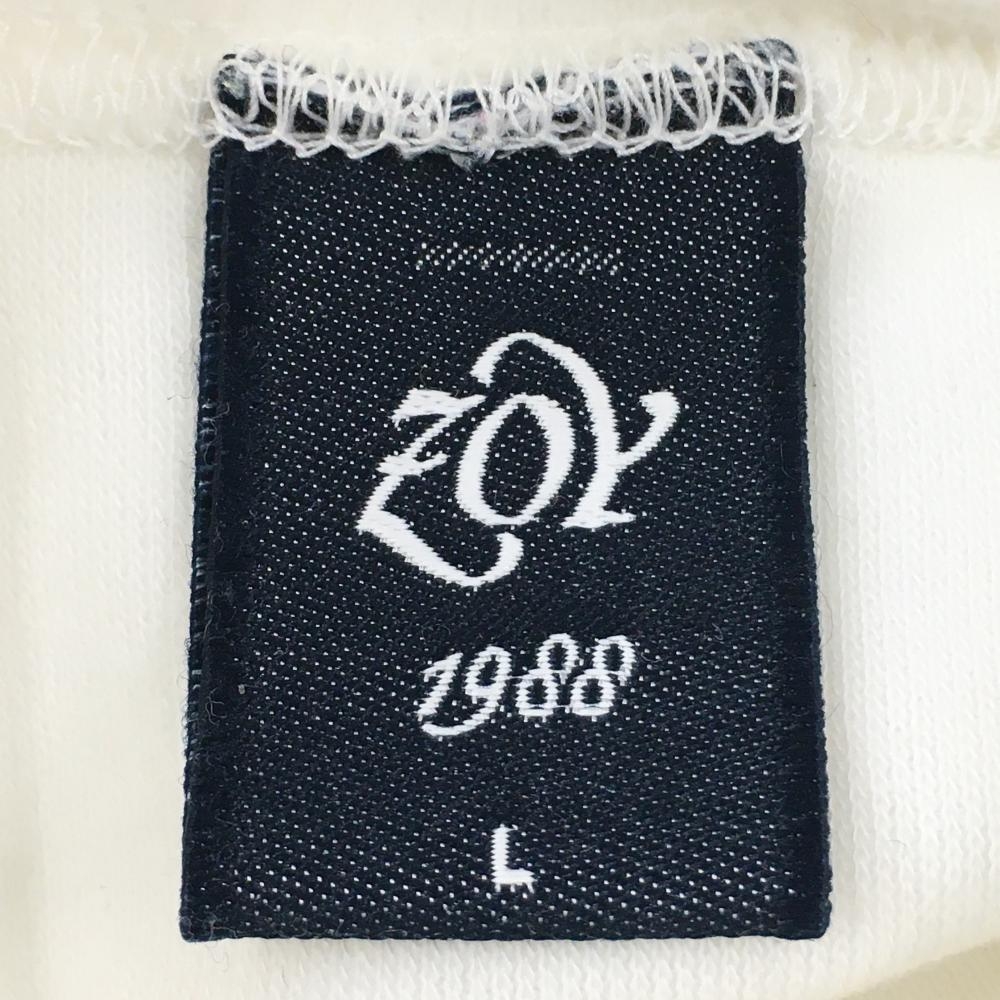【美品】ゾーイ 長袖ハイネックシャツ 白 ロゴグレー 表微起毛 メンズ L ゴルフウェア ZOY